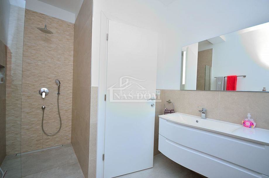 Kuća je građena 2019 godine sa vrhunskim materijalima i opremom, instalacije za centralno grijanje, instalacije za solarno grijanje, dimnjak, el. podizači roleta, komarnici na svim prozorima, Trijal klime Toshiba inverter, sanitarije, tuševi i slavine Hansgrohe , led rasvjeta, vanjski gril, pomno birana keramika, te vrhunski namještaj i kuhinjski elementi kao i apartaura.