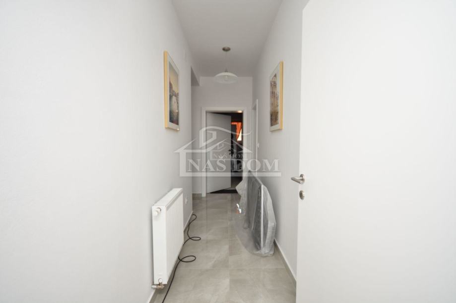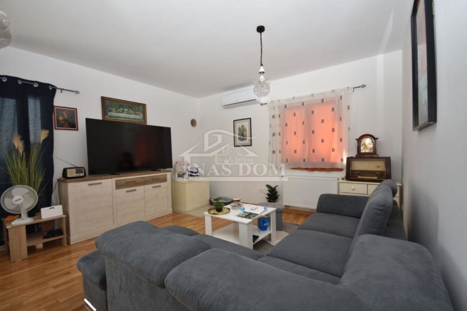 Kuća ima 224m2 neto korisne površine, proteže se na 2 etaže, te se sastoji od: garaža, ulaz, hodnik, ostava, dnevni boravak, kuhinja i blagovaona, natkrivena terasa, hodnik, kupaonica, spavaća soba 1 sa vlastitom kupaonicom, spavaća soba 2, vanjskim stepenicama koje će biti izgrađene naknadno se dolazi do visokog potkrovlja površine 60 m2, a koje može biti uređeno kao dvosoban stan s pogledom na grad i more. Kuća posjeduje manji podrum, prostranu okućnicu i vrt, a spojena je i na sustav odvodnje.