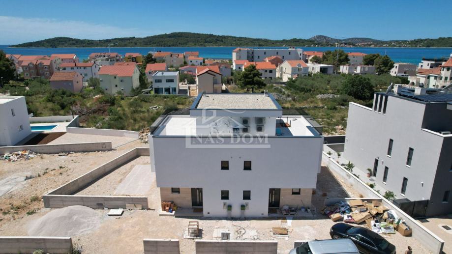Srima- *NOVOGRADNJA* prodaje se dvojna kuća s bazenom . Kuća modernog izgleda trenutno se gradi kvalitetnim materijalima i biti će opremljena prema posljednjem standardu gradnje: stirpor fasada, PVC stolarija antracit boje , kvalitetne podne obloge , moderne kupaonske sanitarije, INVERTER klime sustav hlađenje grijanje u spavaćim sobama i dnevnom boravku , podno grijanje kroz čitavu kuću , Bazen dimenzija 7m*3m, jacuzzi.... Prilikom projektiranja kuće pazilo se na svaki detalj te je projektirana na način da se može koristiti za turistički najam ali i za cjelogodišnje stanovanje.