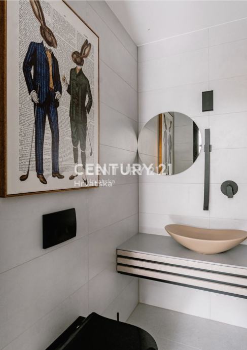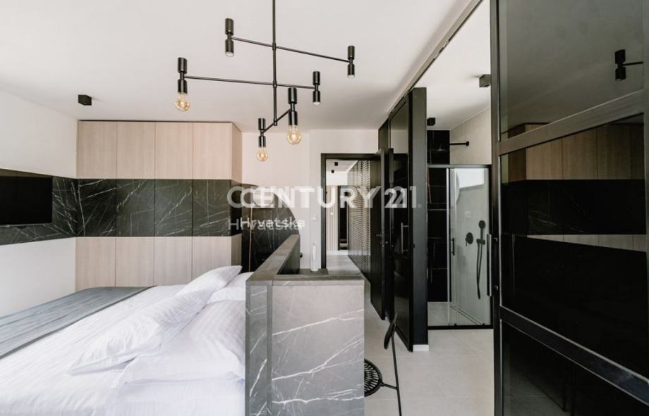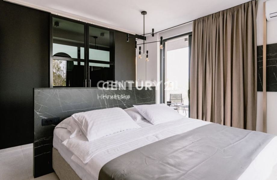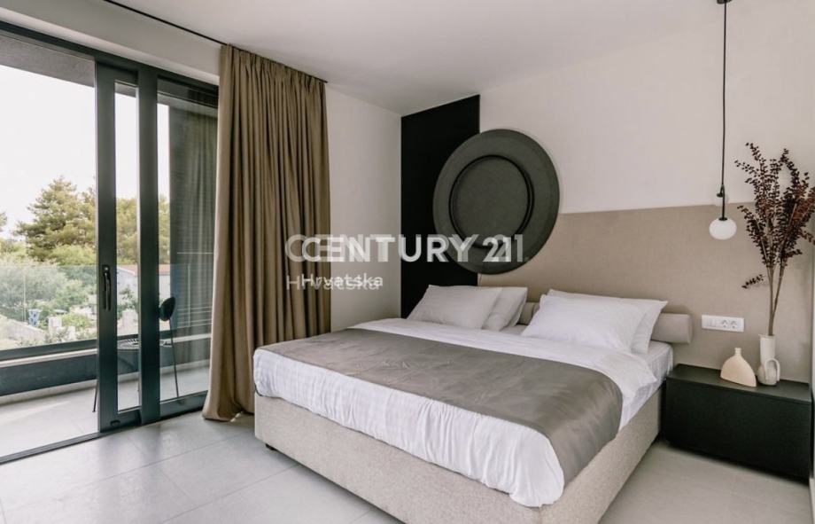 Prvi kat do kojeg se dolazi unutarnjim stepenicama se sastoji od hodnika, 3 spavaće sobe, dvije kupaonice, te dvije natkrivene terase. Jedna od kupaonica ima saunu.