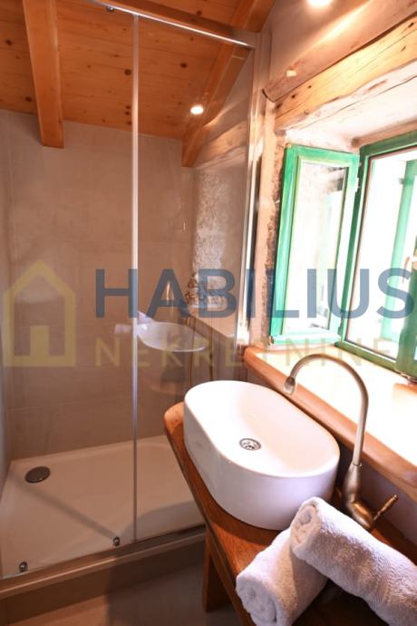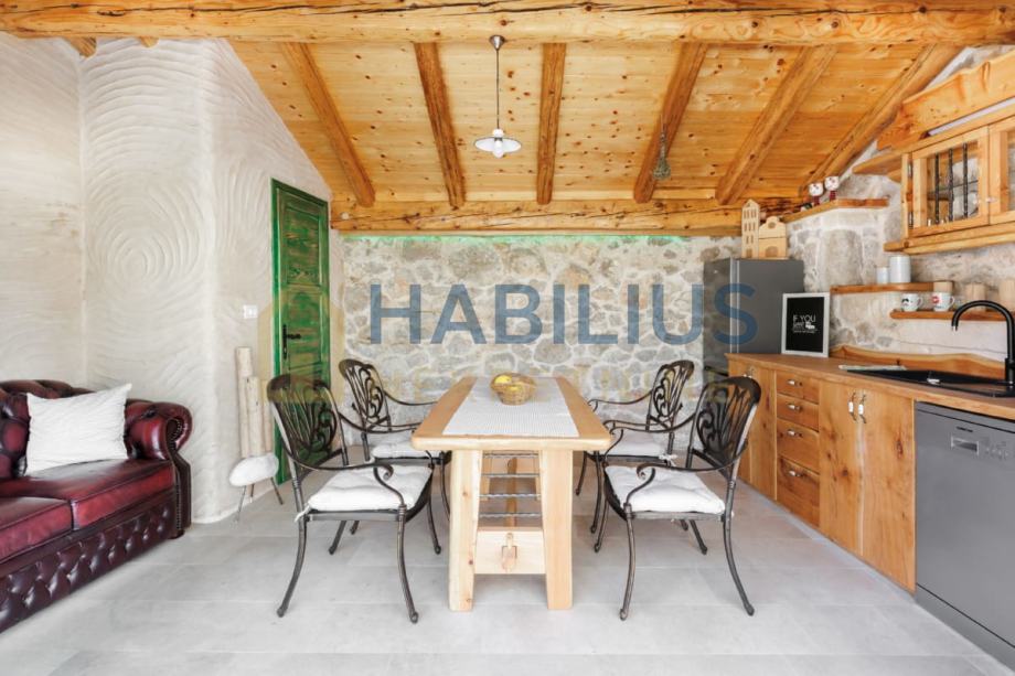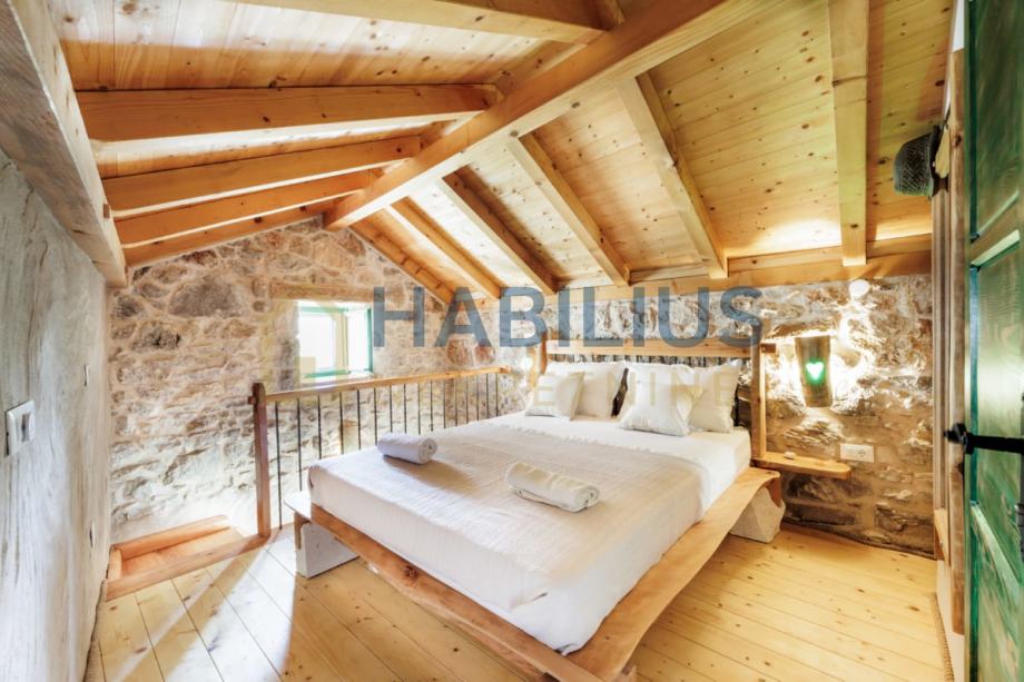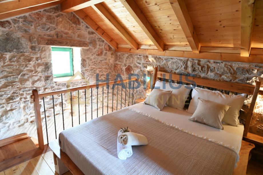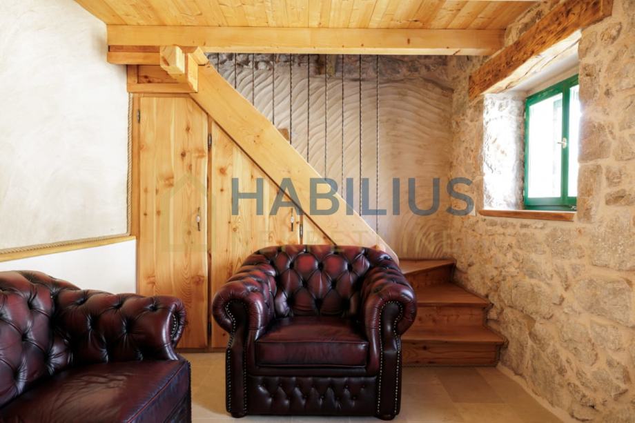 U prizemlju ove prekrasne kuće nalaze se dnevni boravak, potpuno opremljena kuhinja i blagovaonica,te gostinjski toalet Na prvom katu je smještena spavaća soba s bračnim krevetom i kupaonica s tušem. Sav namještaj ručno je izrađen od lokalnih materijala. Velika terasa centralno je mjesto za uživanje. U sklopu kuće nalazi se parkirno mjesto Villa se nalazi u šarmantnom UNESCO zaštićenom selu Velo Grablje, poznatog između ostalog po lavandi, proizvodnji vina, maslinovog ulja, meda. Velo Grablje atrakcija je za posjetitelje iz cijeloga svijeta.