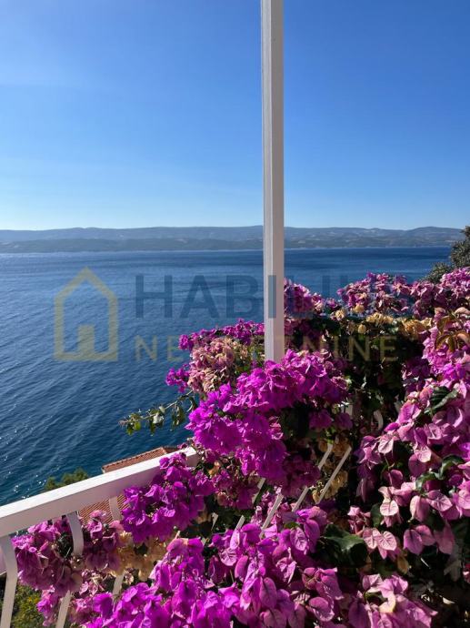Prodajemo jako lijepu samostojeću kuću u Stanićima pokraj Omiša. Nalazi se ispod ceste u 2. redu od mora s otvorenim pogledom na more i okolicu. Kuća cca 200m2 ima prizemlje i 2 kata s tri velika samostalna stana s terasama s kojih se pruža predivan pogled na more. Ima okućnicu s 4 manja vrta puna cvijeća i zelenila, konobu za vino, dimnu kuhinju i roštilj. Betonirani put vodi do kuće, mora i plaže. Kuća je kompletno uređena, na odličnoj poziciji, mirno i tiho mjesto, ima svoju privatnost, u funkciji je turizma. Ima plaćena 3 parkirna mjesta na cesti, mogu se prebaciti na novog vlasnika.