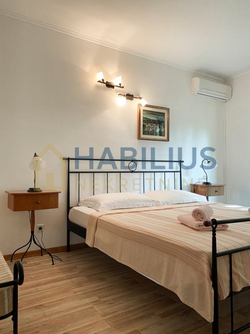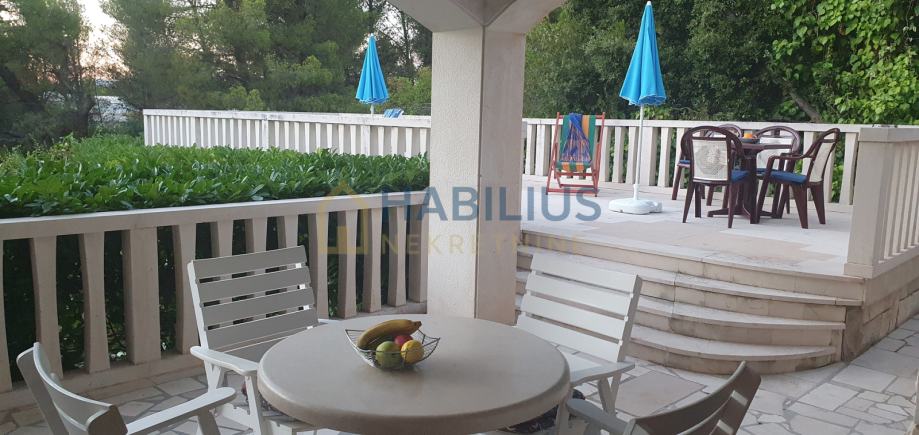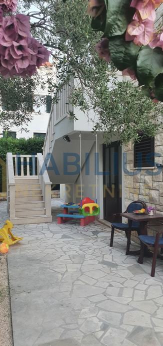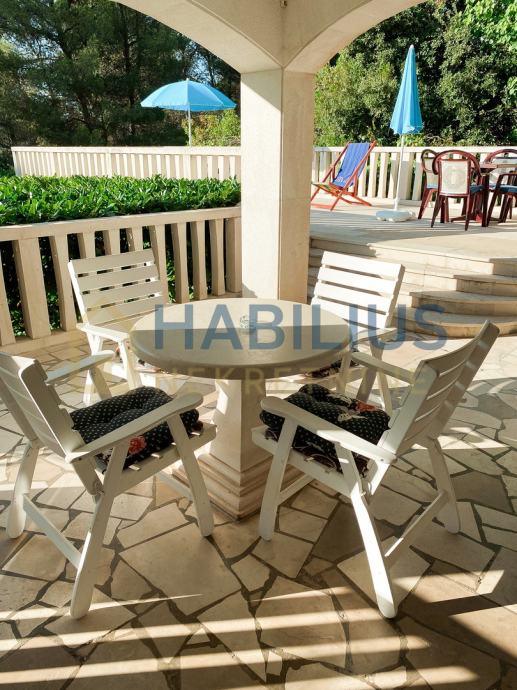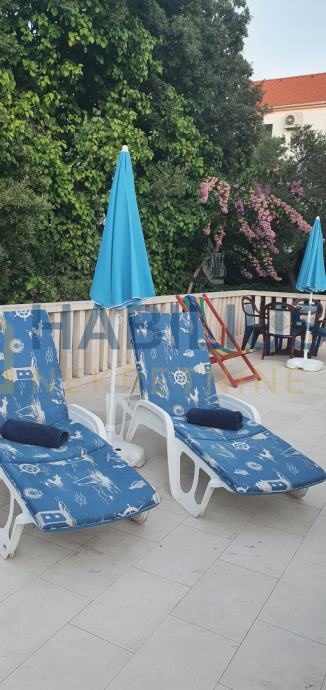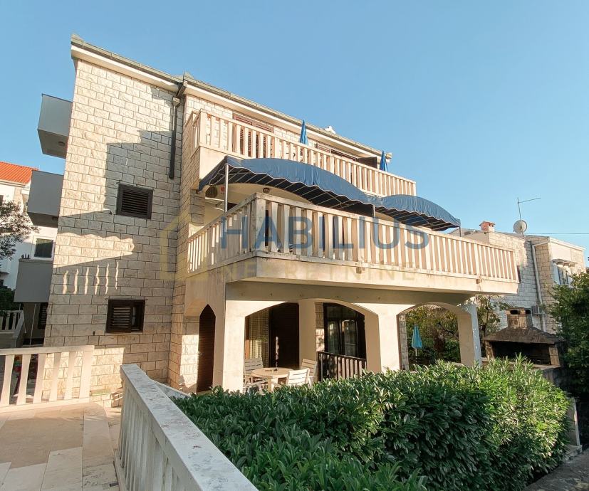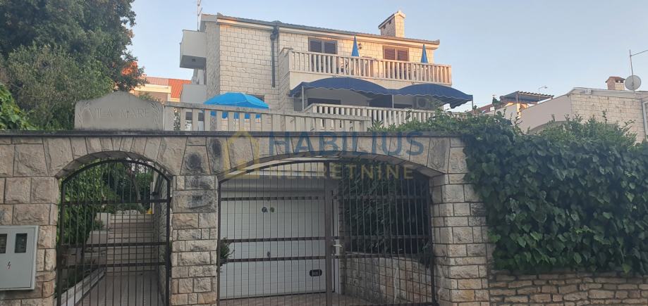 Predivna villa sa 6 apartmana, uhodan posao iznajmljivanja. Villa se prodaje sa kompletnim raspoloživim namještajem i opremom, kućanskim aparatima i posuđem. Ima predivan vrt, kamin, prekrasne terase. Udaljenost od mora je 2 minute pješke. Garaža ima daljinsko automatsko otvaranje, a postoje dvije ulazne kapije na dvor. Posjeduje svu potrebnu dokumentaciju. Useljenje moguće odmah. Nekretnina je poželjna za življenje kao i za nastavak bavljenja turizmom. Cijena je snižena na =830,000 € (+ agencijska provizija 3%) i prodaje se sa uhodanom tvrtkom.