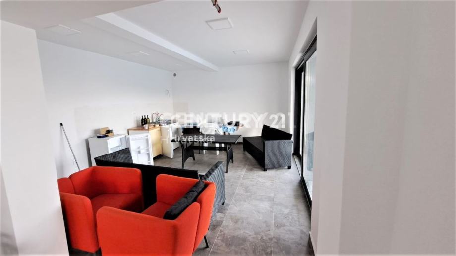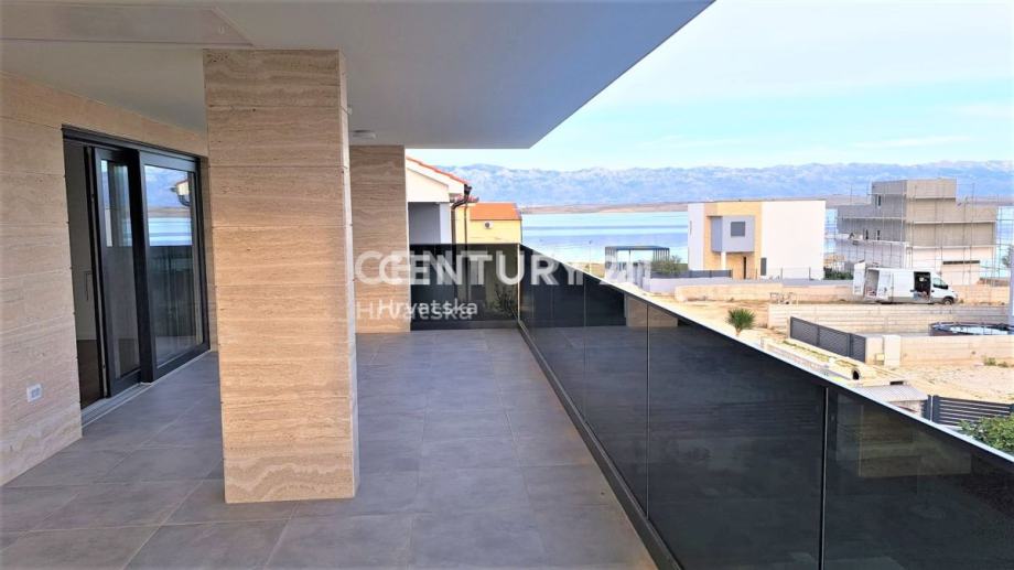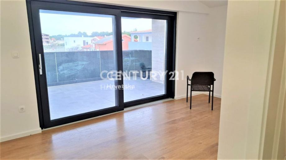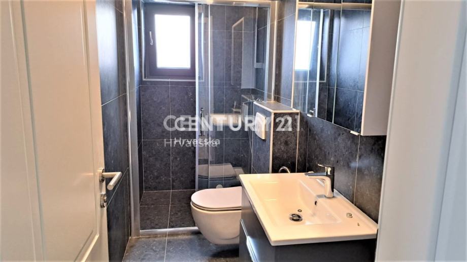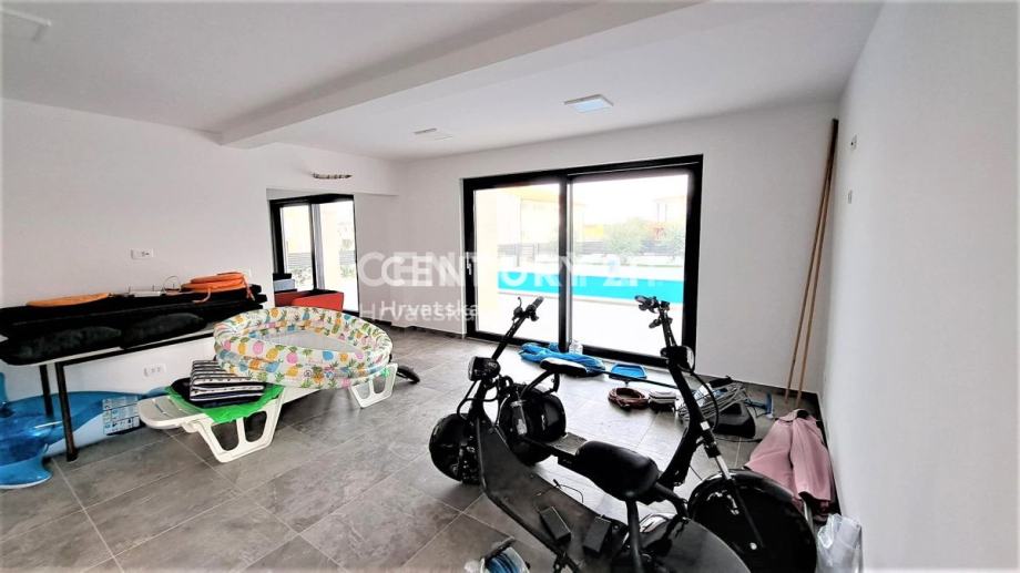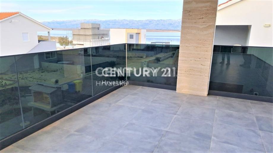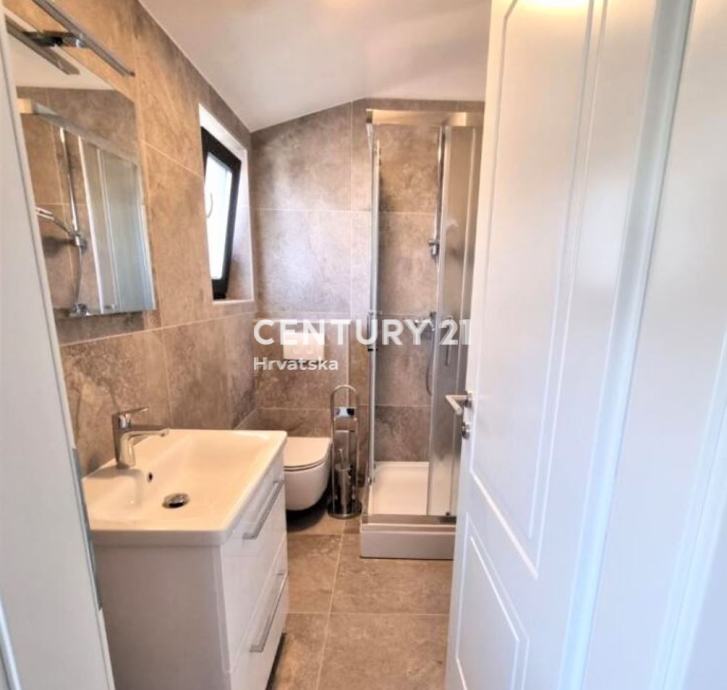 An excellent newly built house for sale with a swimming pool on the island of Vir, only 100m from the sea and with a great sea view. The surface of the house is 257.65 m2 and it was built on a plot of land of 553 m2. The house consists of a basement, ground floor and first floor.In the basement we find the engine room, while on the ground floor the layout of the rooms is as follows: kitchen with dining room and living room, toilet, bedroom with bathroom, corridor and covered terrace.On the first floor, there are four bedrooms with their own bathrooms, a covered terrace that can be accessed from two rooms.Parking for five cars and a 43m2 swimming pool are available in the yard.The house was built in 2022. Facade thermal insulation is 10 cm thick. PVC windows with shutters, triple-glazed glass and mosquito nets are installed. The floors are covered with tiles. Air conditioners are installed in the living room and in each bedroom. The pool is finished with preparation for heating. In the yard we also have an outdoor shower, irrigation and olive trees.