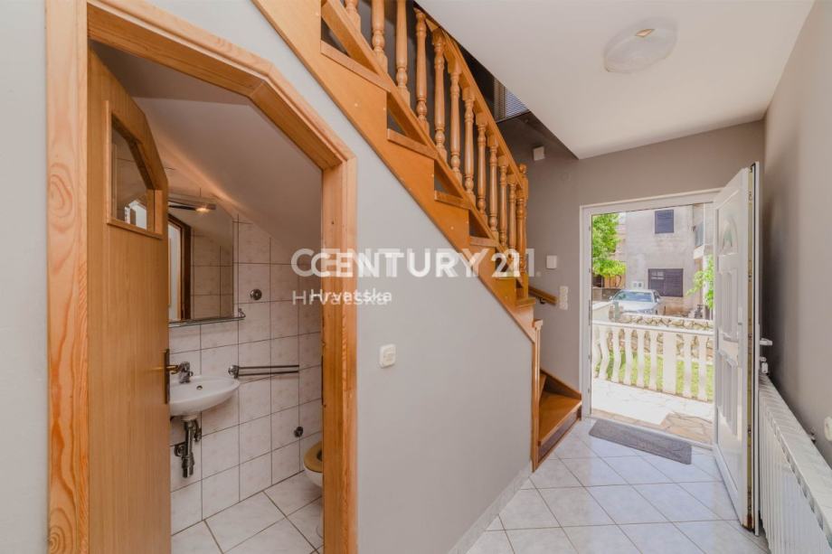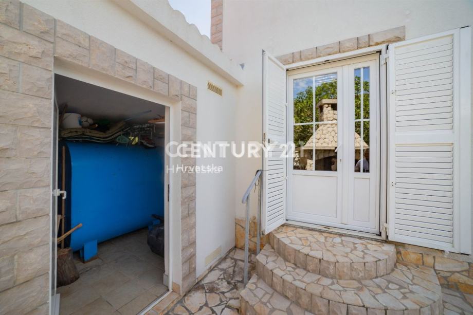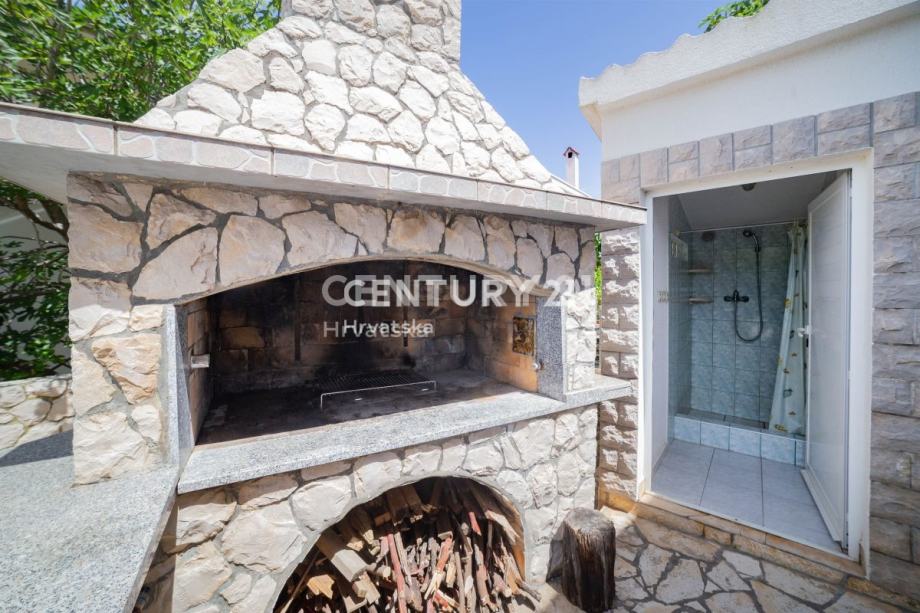 V patře jsou 3 ložnice, koupelna, šatna, předsíň, uzavřená terasa, kterou lze využívat i v zimě, s nádherným výhledem na moře a Velebit.