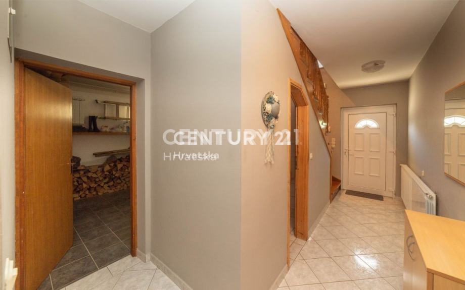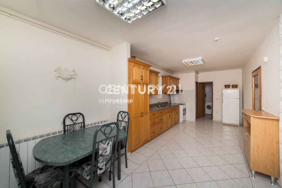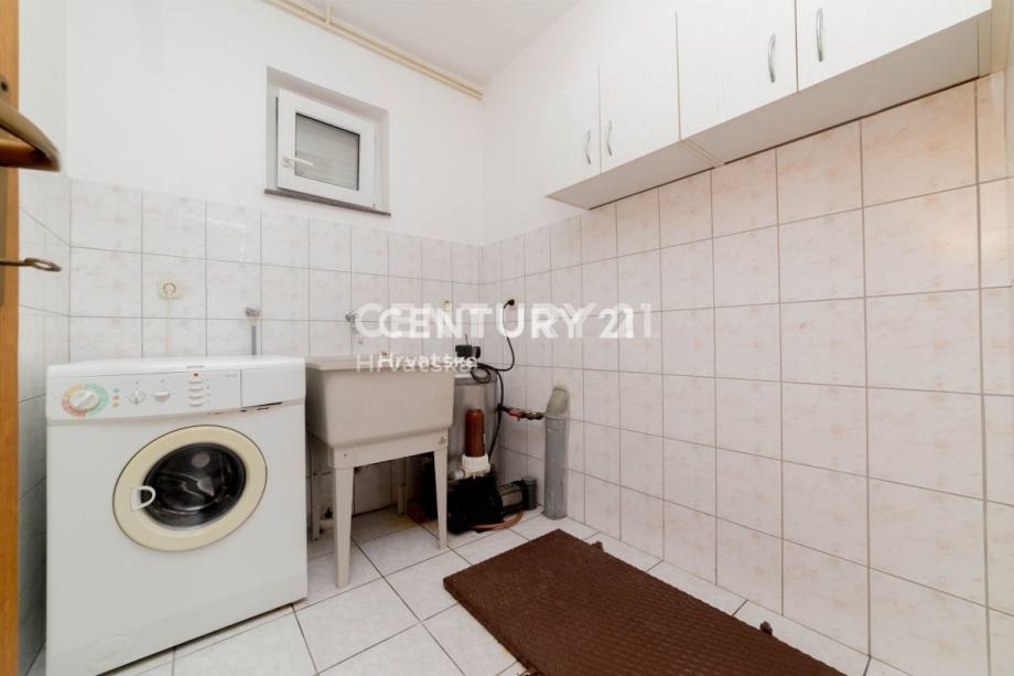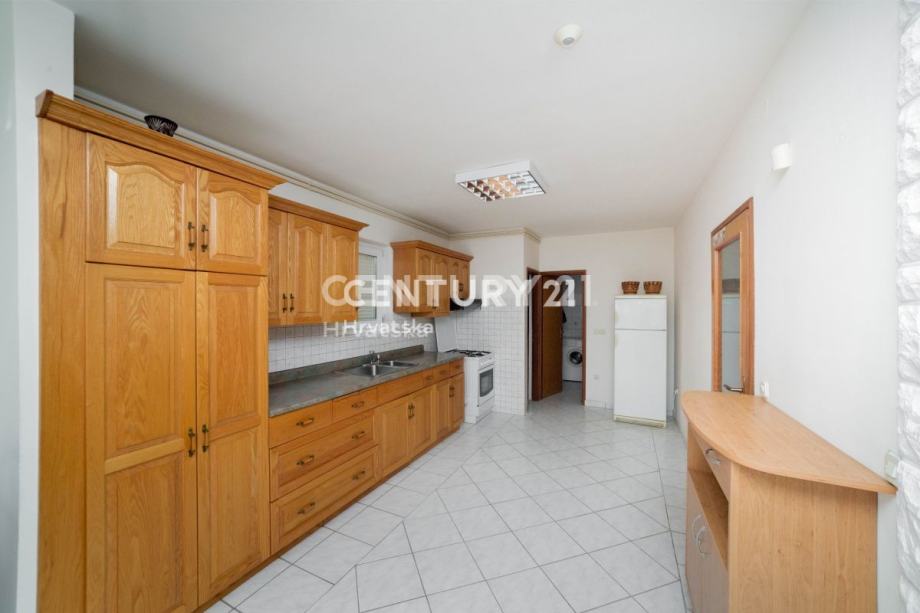 Prizemlje se sastoji od ulaznog hodnik, stepeništa, kupaonica sa tušem i wc-om, garaže, prostranog dnevnog boravka , velike kuhinje, spremište i ostava.