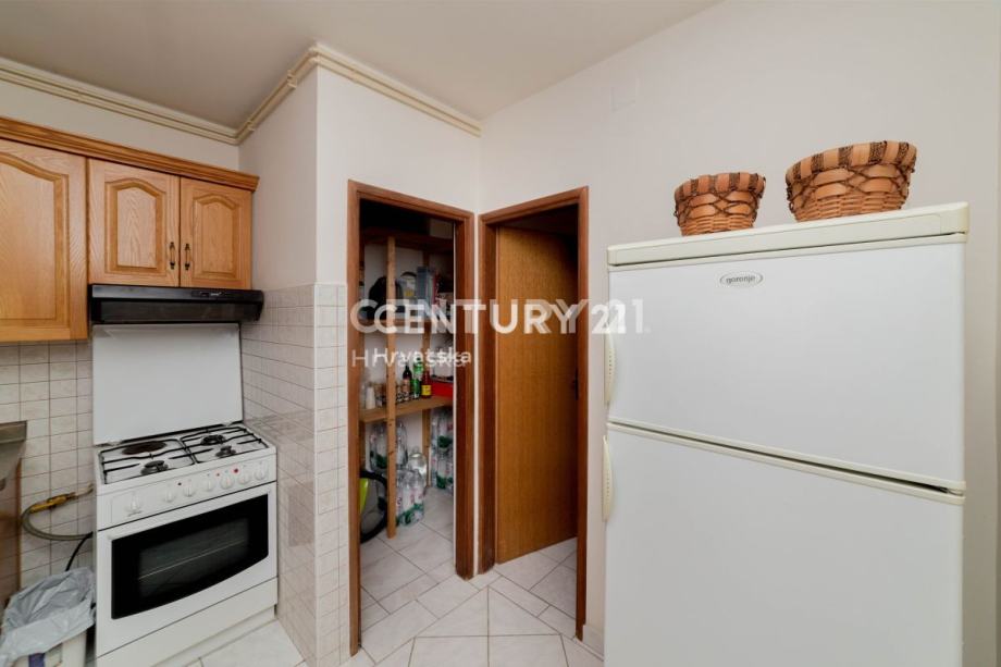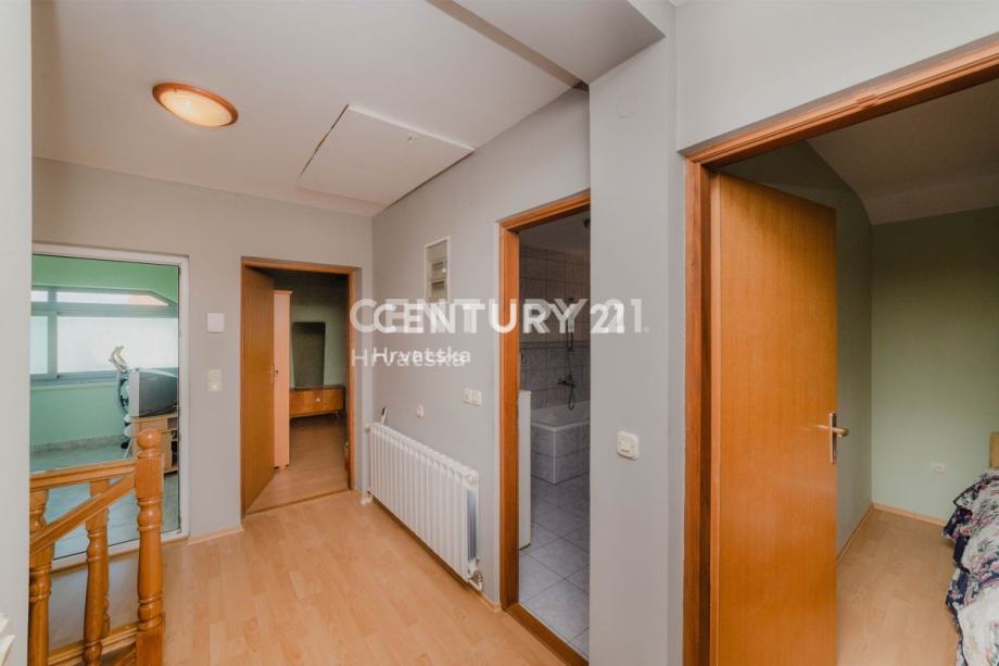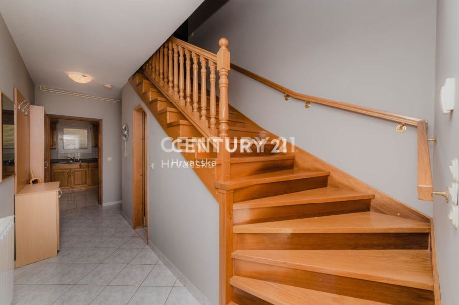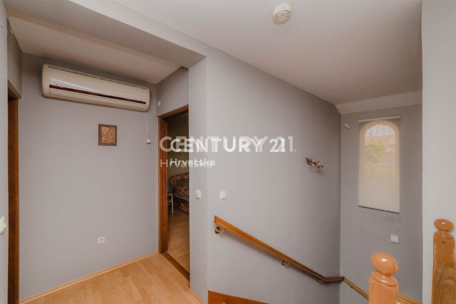 Na katu su 3 spavaće sobe, kupaonica, garderoba, predsoblje, zatvorena terasa koja se može koristiti i u zimi sa koje se pruža predivan pogled na more i Velebit.