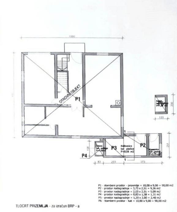 Sastoji se od prizemlja i kata, svaka etaža ima 90 m2 stambene površine, ukupno 180 m2.
