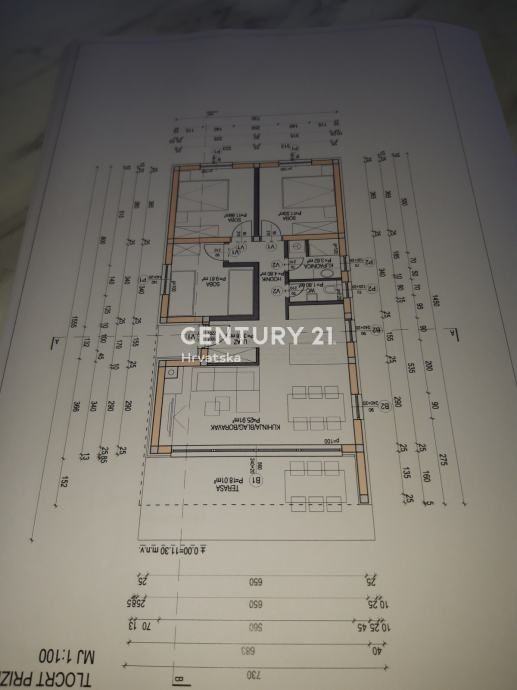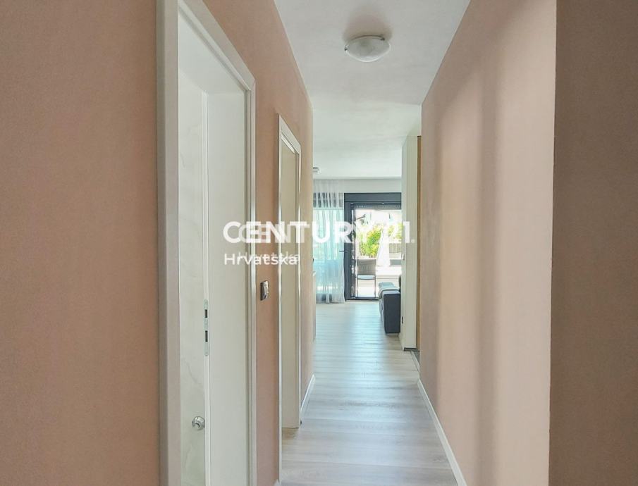 Sastoji se od: ulaznog hodnika, zasebnog wc, kupaonice sa walk in tušem, 3 spavaće sobe, kuhinja, blagavaona i DB sa izlazom na veliku natkrivenu terasu.
