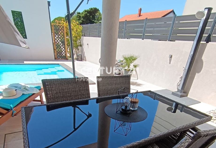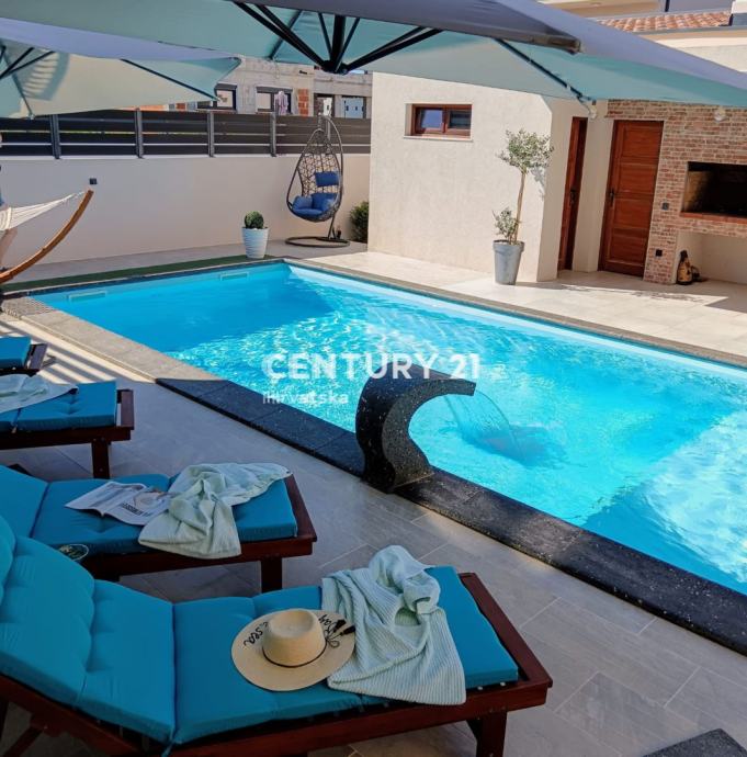 VIR, KUĆA SA BAZENOM I APARTMANIMA, LUKSUZNA NOVOGRADNJA! Na otoku Viru u cetru mjesta prodaje se lijepo uređena i opremljena kuća sa apartmanima, bazenom, lijepo uređenom okućnicom te dodatnim građevinskim zemljištem. Kuća je građena 2018.godine prizemlje i 1 kat, dok je 2 kat građeni naknadno i trenutno je u roh bau fazi, koji se planira završiti do kraja ove godine. Završetkom gornjeg kata kuća će imati 434 m2 bruto površine neto 392 m2. Sastoji se od: - prizemlja: u kojem je jedan studio apartman površine cca 33 m2 koji se sastoji od kupaonice, kuhinje sa blagavaonom, spavaćim dijelom i izlazom na terasu. Zatim je dodatni jednosobni stan od cca 50 m2 koji ima kuhinju sa blagavaonom i DB, kupaonicu, odvojenu spavaću sobu, terasu, te se u prizemlju dodatno nalazi i manji zasebni prostor koji može služiti kao prostorija za druženje, poslovni prostor ili konoba. Tom prostoru pripada i dodatna kupaonica. - 1. kat: prostrani 4 sobni stan bruto površine 156 m2, neto 135 m2, koji ima 3 odvojene spavaće sobe, kuhinju sa blagavaonom i dnevnim boravkom, 2 kupaonice, 2 terase. - 2 kat: prostrani 4 sobni stan, isti raspored kao i stan na 1 katu. Kuća se nalazi na parceli od 497 m2, gdje je smješteni zajednički bazen površine 31 m2, pomoćna zgrada od 42 m2 koja može služiti kao dodatni smještajni prostor. U cijenu je uključeno i građevinsko zemljište u nastavku, zasebna parcela površine 303 m2, tako da ukupna površina zemljišta iznosi 800 m2. Kuća je potpuno namještena i opremljena i odmah useljiva. Nekretnina se koristi za turizam u svrhu iznajmljivanja gostima i donosi odličan prihod. Ostale informacije: Smiljana Drk, mob. 098 492 873 E-mail: smiljana.drk@c21.hr CENTURY 21 Lider nekretnine Ured: VIR, PUT BUNARA 11 Zadar, J.B.Jelačića 1 d Rogoznica, A. Starčevića 4 češki/ VIR, DŮM S BAZÉNEM A BYTY, LUXUSNÍ NOVOSTAVBA! Na ostrově Vir, v centru města, je na prodej krásně zdobený a vybavený dům s apartmány, bazénem, krásně upravenou zahradou a dalšími stavebními pozemky. Dům byl postaven v roce 2018. Přízemí a 1. patro, přičemž 2. patro bylo postaveno později a v současné době je ve fázi rekonstrukce, která má být dokončena do konce tohoto roku.