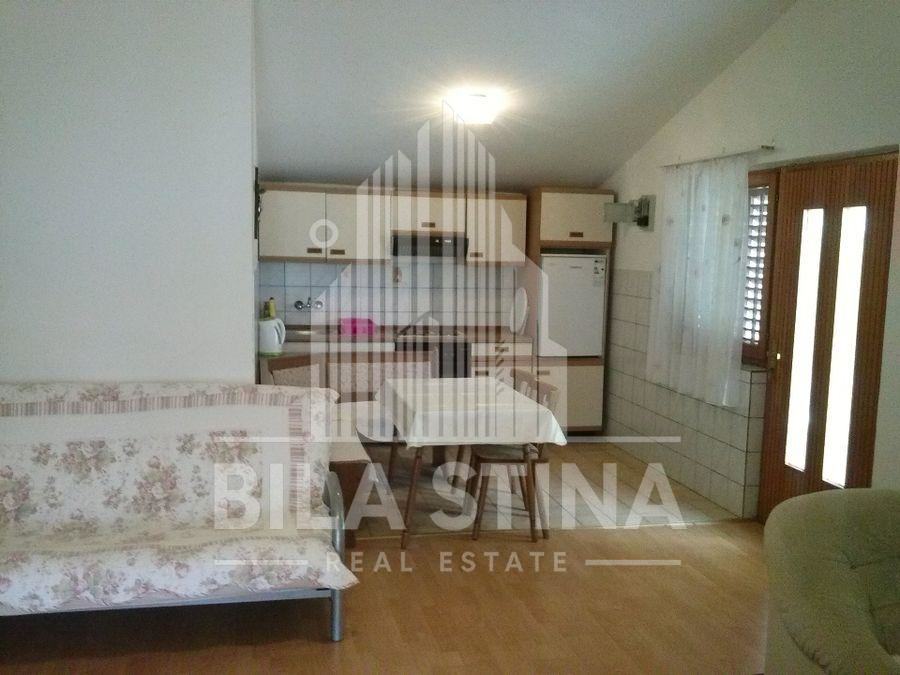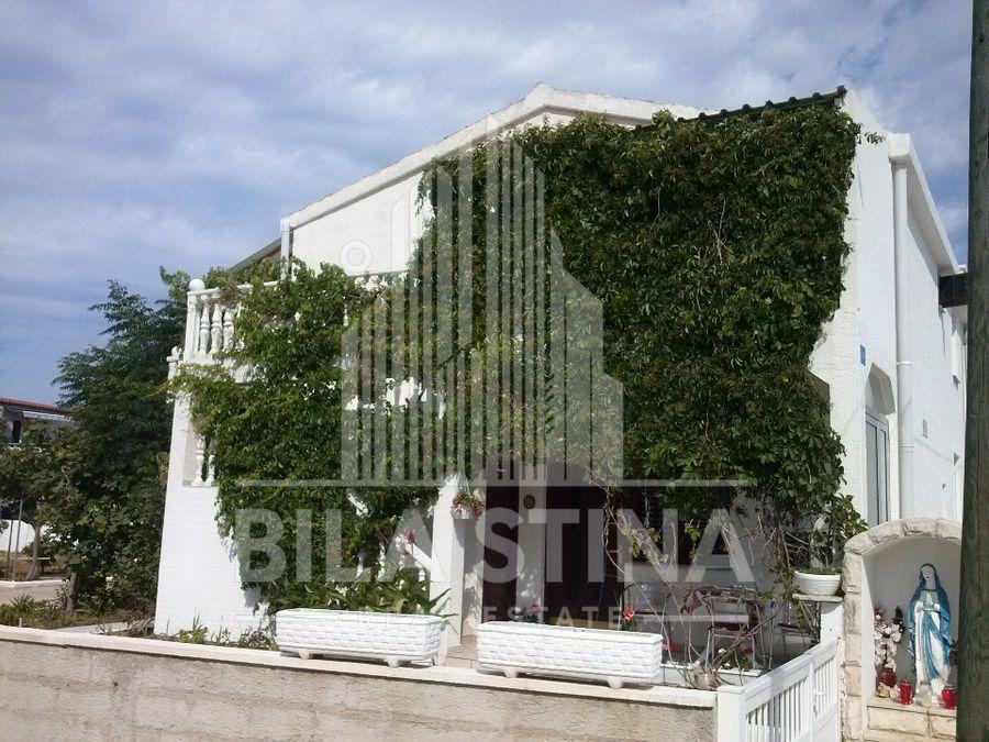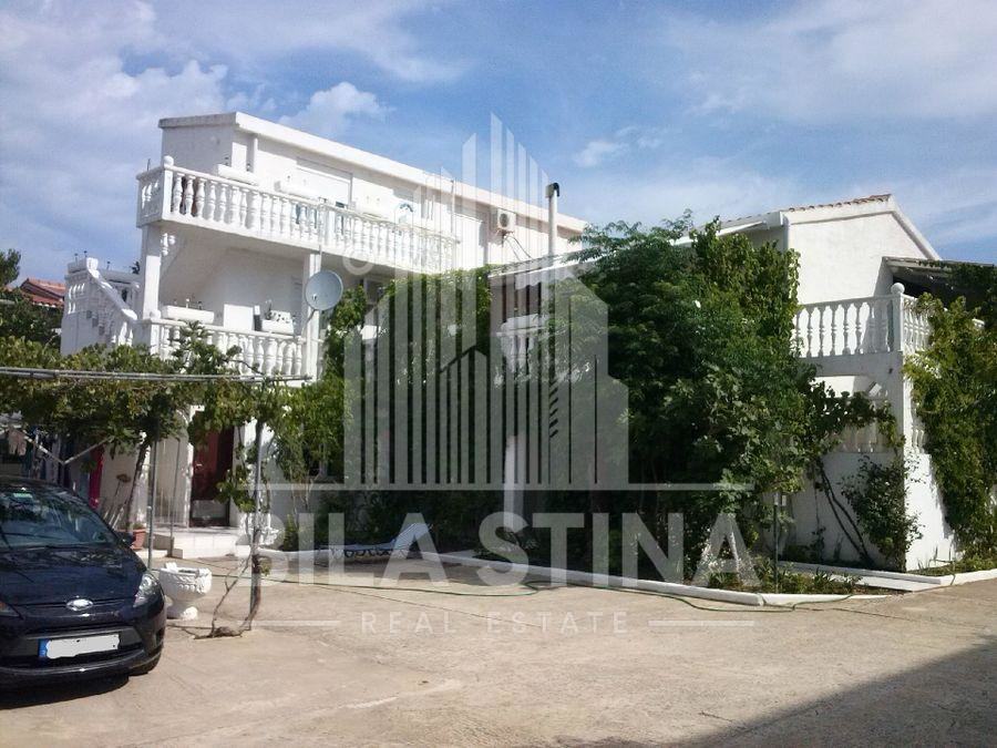 Vir, kuca sa 6 stanova i garažom. Blizina centra, neposredno uz trgovinu. 300m od plaže. Tri apartmana sa 2 spavaće sobe. Dva apartmana sa 1spavaćom sobom . 1 studio apartman. Lijepe velike terase. Uređena oućnica. Velika garaža. Parcela 416m2. 8 parkirnih mjesta. Po dogovoru moze se povoljno kupiti i susjedna parcela od 270m2 (uz kupnju cijele kuće).