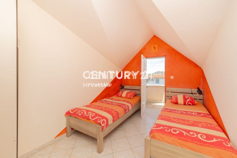 EKSKLUZIVNA PRODAJA! SNIŽENA CIJENA! VRSI, KUĆA KATNICA SA 6 APARTMANA, UHODANI POSAO! Posredujemo u prodaji zanimljive kuće sa 6 uređenih i opremljenih apartmana, dodatno jedan manji stan ( prostor) uređen za osoblje. Nekretnina se nalazi u Vrsima na odličnoj lokaciji svega 300 m od mora i uređene plaže. Terase svih stanova okrenute su prema moru i imaju predivan pogled na more i prirodu. Kuća se sastoji od prizemlja, 1 i 2 kata na kojima se nalaze po 2 uređena apartmana, sagrađena na zemljištu ukupne površine 397 m2. Prizemlje i kat građeni su 2003.godine na temelju građevinske dozvole. 2013.godine kuća je nadograđena te su izmijenjeni tlocrti tako da je kompletna kuća legalizirana i ishođeno je Rješenje o izvedenom stanju 2015.godine. Zgrada je priključena na javnu elektro mrežu i javnu vodovodnu mrežu. Infrastruktura za kanalizaciju je provedena po mjestu, ali domaćinstva još nisu priključena, do daljnjega koristi septička jama. KUća ima ukupno 318,50 m2 bruto površine, 282,58 m2 neto površine. U prizemlju nalaze se jedan mini studio, jedan 1 sobni stan sa kuhinjom, balkonom i kupaonicom ( roza boja) i jedan 2 sobni stan sa kupaonicom i kuhinjom i balkonom ( žute boje). Na 1.katu nalazi se 2 sobni apartman sa kuhinjom i blagavaonom sa izlazom na terasu i kupaonicom uređeni u zelenoj boji, i 3 sobni apartman sa kuhinjom i kupaonicom i terasom uređeni u plavoj boji. Na 2 katu nalazi se dva 2 sobna apartmana sa kupaonicama, kuhinjom i blagavaonom sa izlazom na terasu, jedan obojeni u narančastoj boji drugi u crvenoj boji. Kuća se do prošle godine iznajmljivala u svrhu turizma i ostvarila odličan prihod. Radi lakše evidencije apartmana i opreme svaki apartman je obojeni i uređeni u jednoj boji. Svi apartmani su uređeni, opremljeni i odmah useljivi. Gornji stanovi su klimatizirani, u prizemlju nema klime. Podne obloge su uglavnom keramičke pločice i laminat. Komunikacija između katova je unutarnjim stepeništem. U dvorištu ima dovoljno mjesta za parking više vozila, ima 2 vanjska tuša, natkrivenu ljetnu kuhinju koja je u potpunosti opremljena sa frižiderima, sa kuhinjskim elementima, perilicama rublja, sudoperom, stolovima i stolicama za zajedničko druženje i spremanje hrane na otvorenom. U dvorištu se nalazi i roštilj te dodatno stolovi i stolice. Nekretnina se koristila u svrhu turizma, kategorizacija sa 3 *. Zamisao vlasnika je bila da svaki gost koji dođe da se ugodno osjeća da ima vlastiti prostor za odmor i privatnost u svome apartmanu, a ako je veće društvo ili se žele opustiti i družiti sa drugim gostima, mogu koristiti zajednički prostor, ljetnu kuhinju ili roštilj u dvorištu. Za više informacija možete se obratiti licenciranom agentu: Smiljana Drk Century 21 Lider nekretnine Mob. + 385 98 492 873 E-mail: smiljana.drk@c21.hr Uredi: VIR, PUT BUNARA 11 ZADAR, B.JOSIPA JELAČIĆA 1 D ROGOZNICA, A.STARČEVIĆA 4 Češki/ EXKLUZIVNÍ VÝPRODEJ! VRSI, DŮM SE 6 BYTY, ZNÁMÁ PRÁCE! Nabízíme k prodeji zajímavý dům se 6 zařízenými a vybavenými byty plus jeden menší byt (prostor) zařízený pro personál. Nemovitost se nachází ve Vrsi, ve výborné lokalitě, pouhých 300 m od moře a dobře udržované pláže. Terasy všech apartmánů směřují k moři a mají nádherný výhled na moře a přírodu.