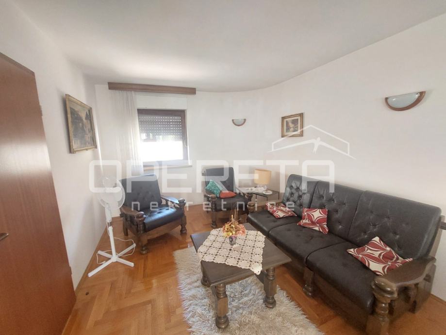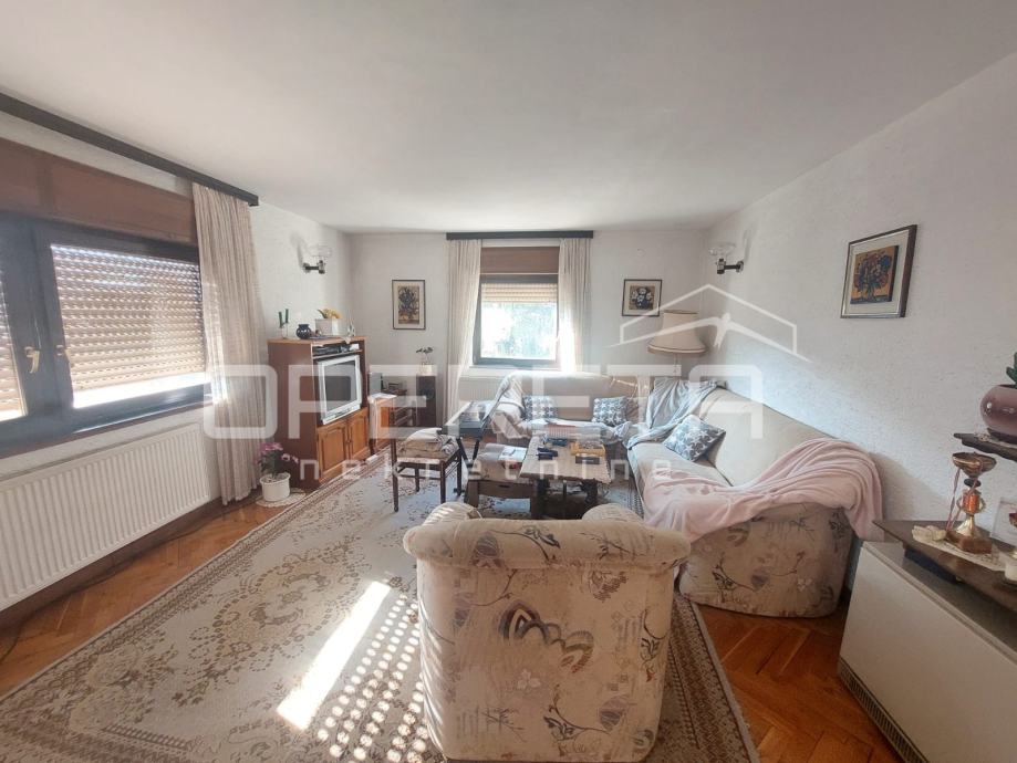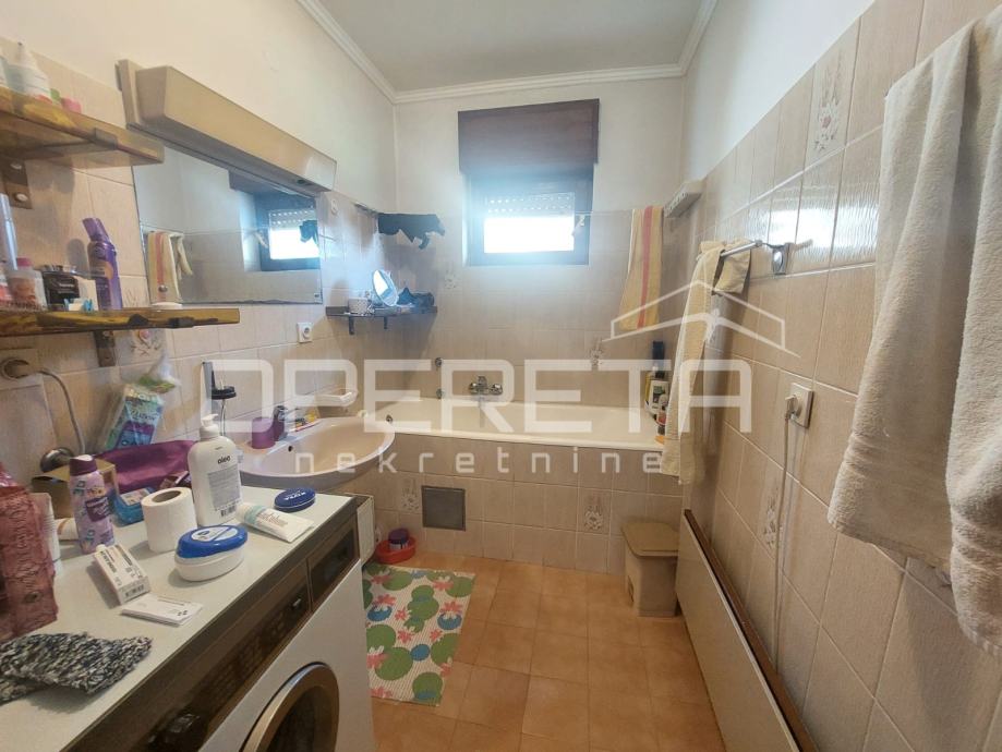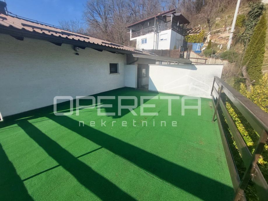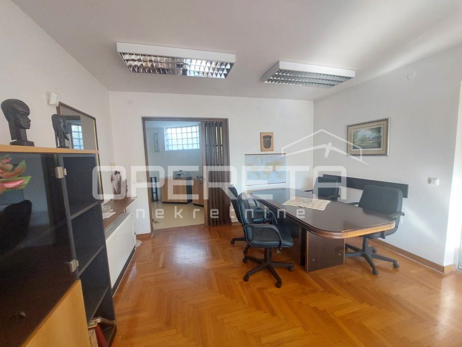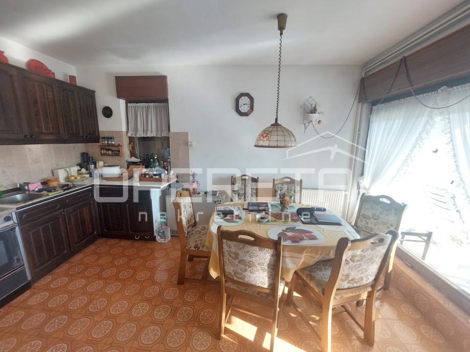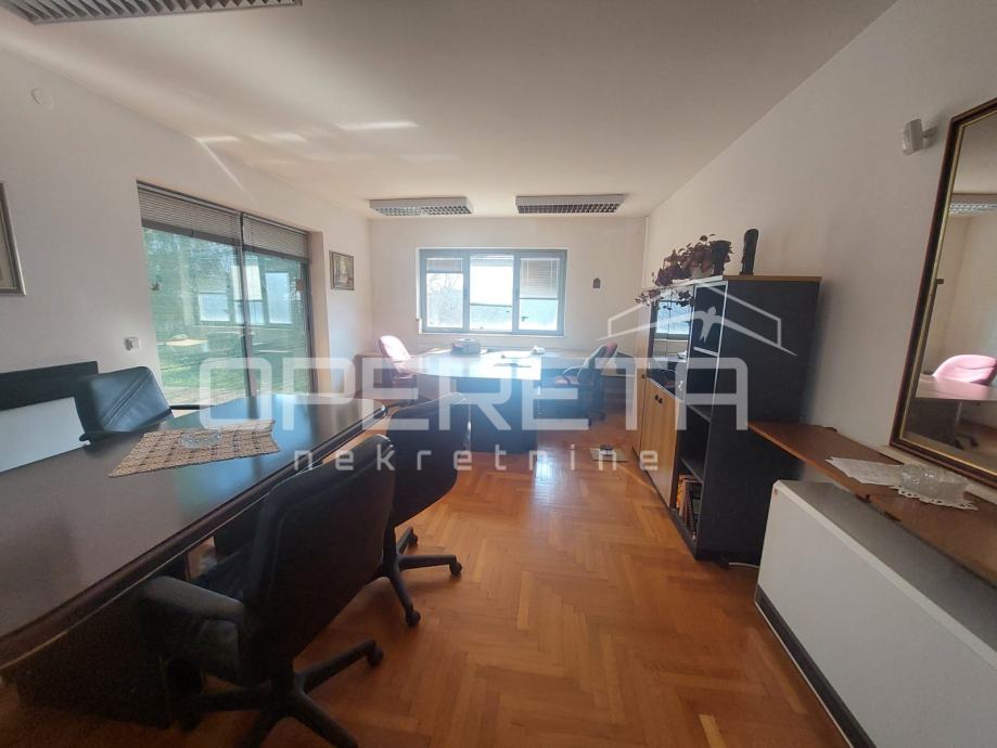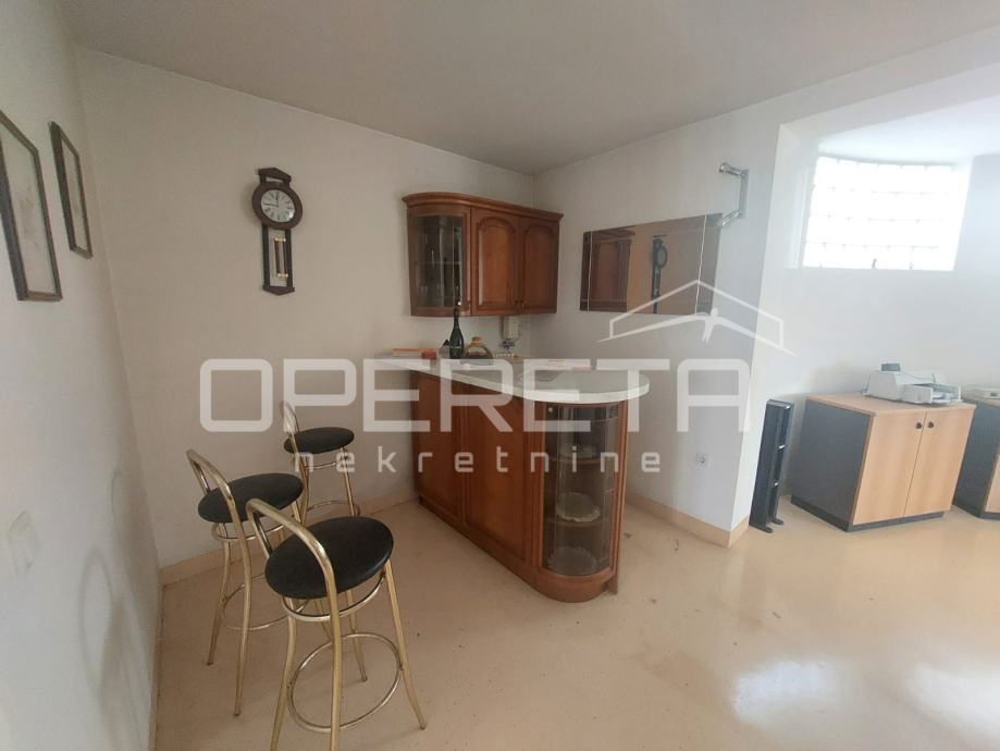 U ponudi je kvalitetna samostojeća kuća sa dodatnim uredskim prostorom na odličnoj i mirnoj lokaciji u Vugrovcu. Kuća se sastoji od: suterena, prizemlja i kata . SUTEREN 47m2 ima; garaža i spremište, PRIZEMLJE 145m2 ima: ulazni prostor stubišta, kuhinju s blagovaonicom, dnevni boravak, WC, te predprostor i uredski dio sa izlazom na balkon sve obračunato po koeficijentu, KAT 119m2 ima; kupaonicu s wc-om, 3 spavaće sobe te veliku terasu i balkon. Grijanje je centralo na lož ulje. Blizina trgovina, škole, vrtića i ostalih sadržaja potrebnih za ugodan život.