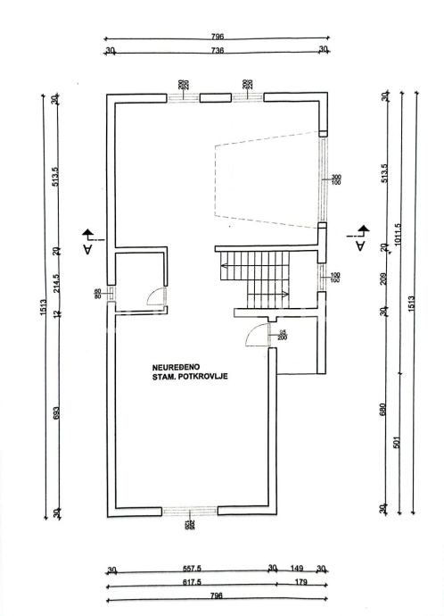 Prizemlje i potkrovlje su koncipirani kao dvoetažni stan povezan unutarnjim stubištem.