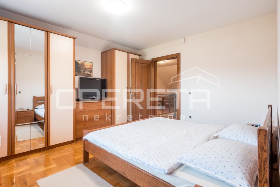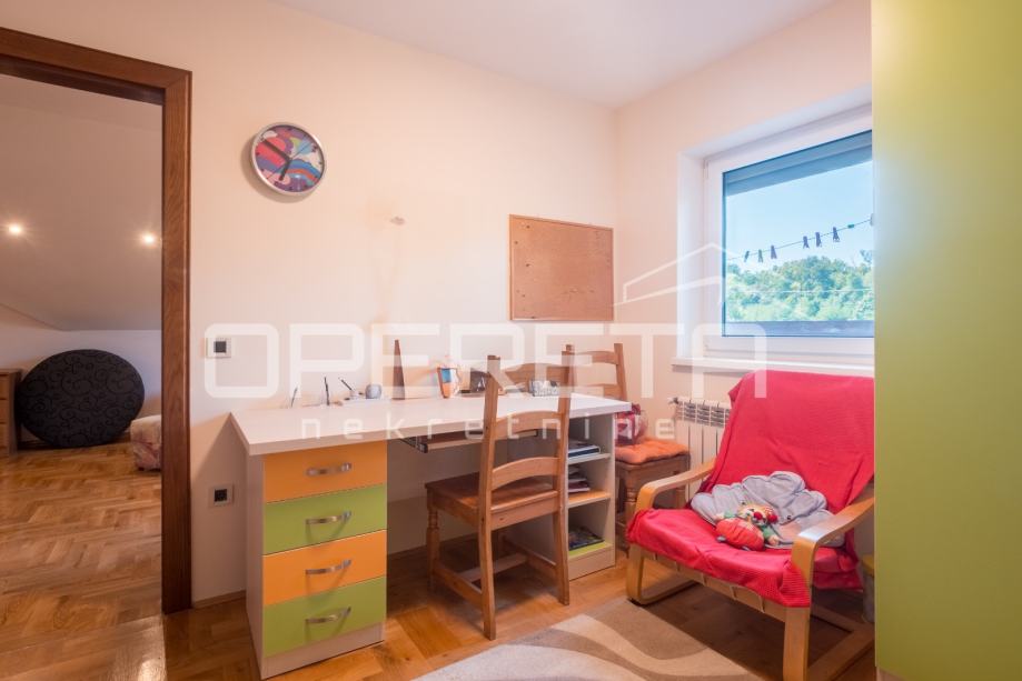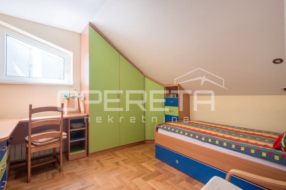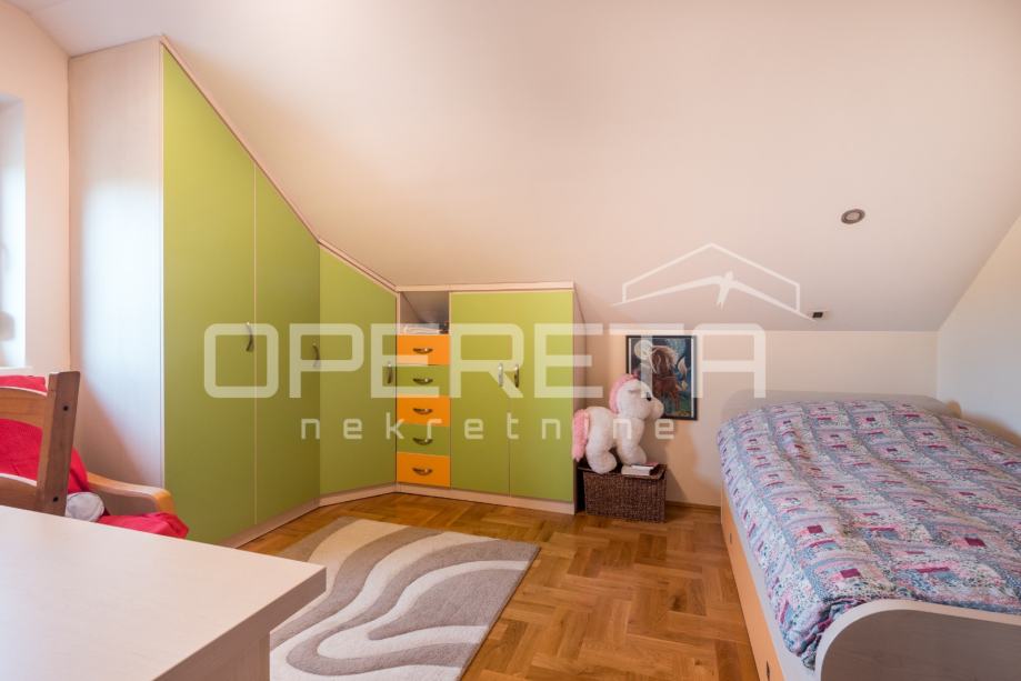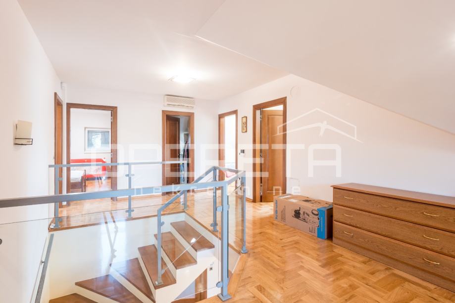 Sastoji se od 5 spavaćih soba, dvije kupaone, terase, kuhinje sa blagovaonom i dnevnim boravkom, te velikom garažom i zimskim vrtom. Nadomak je svih sadržaja za obiteljski život, kao što su dućani, vrtići, škola, ljekarna i sl.