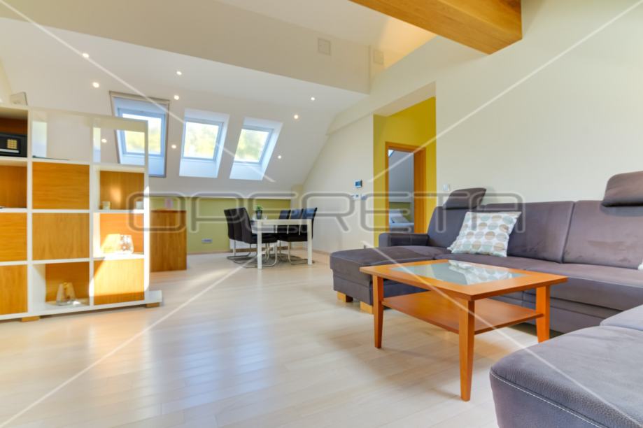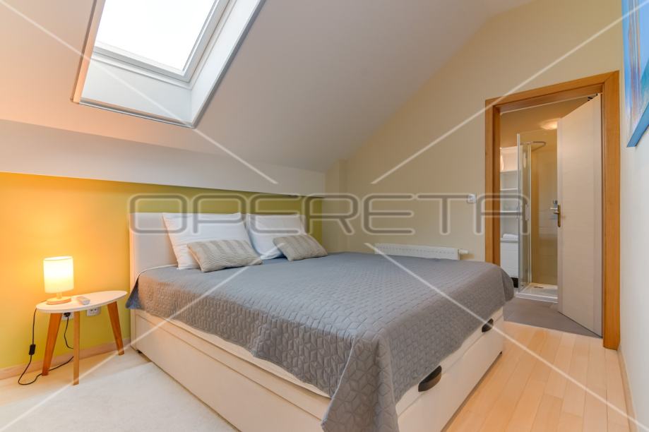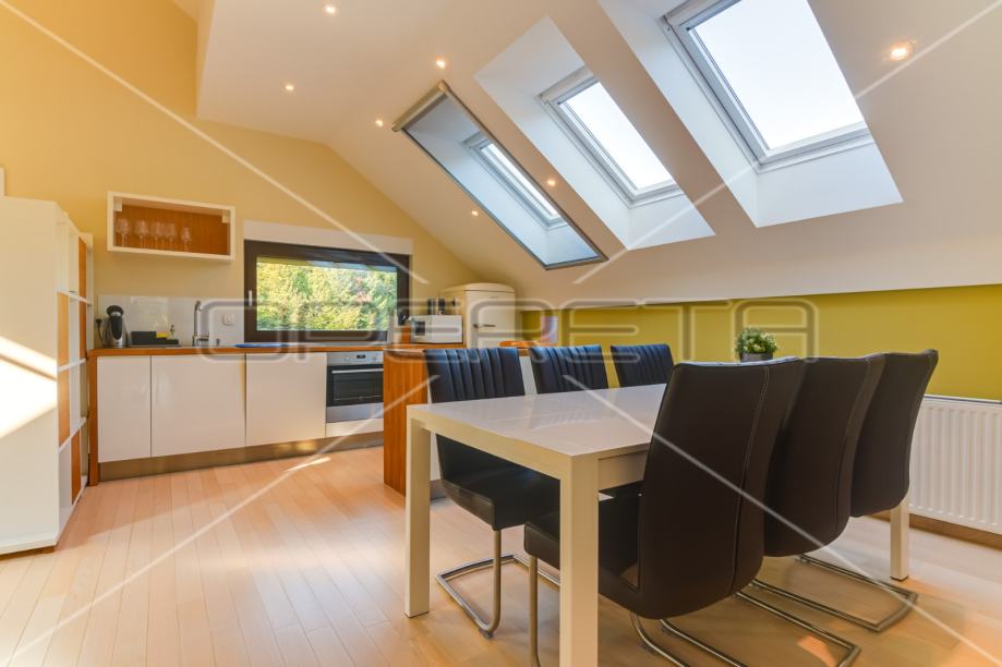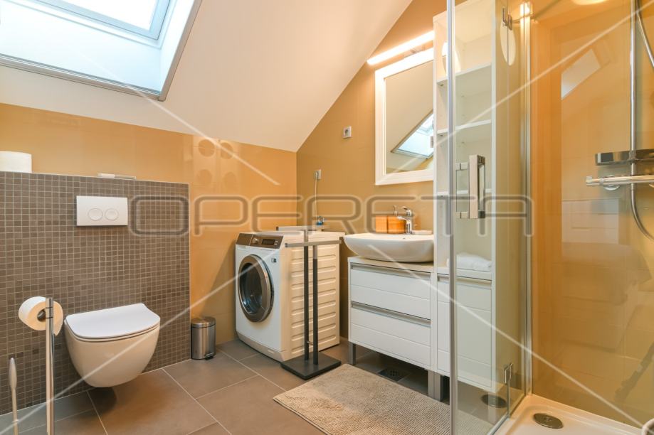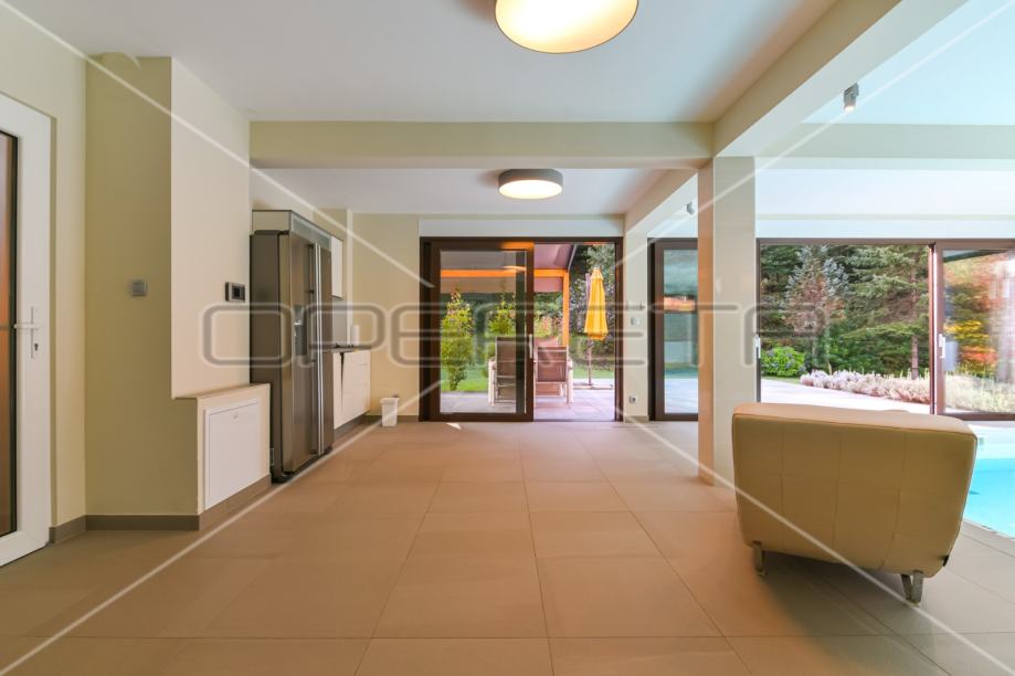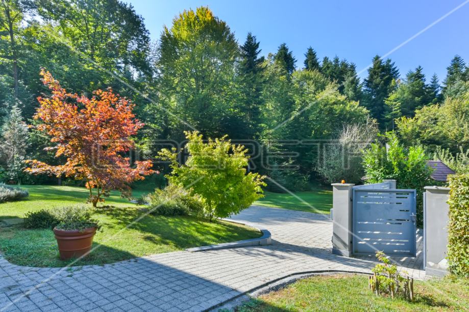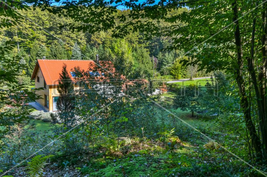 Moderna samostojeća vila od 264 m2 luksuznog interijera smještena na skrovitoj zelenoj oazi od 2130 m2. Razvedena je u tri etaže. U podrumskom prostoru nalazi se teretana, radna prostorija, hodnik i prostor tehnike bazena. Prizemljem prevladava bazen ( vrhunske izvedbe s protustrujnim plivanjem, slana voda) sa prostorom za opuštanje koji je putem kliznih stijena i vanjskih terasa u direktnom kontaktu s prirodom i šumovitim okruženjem, te wc + tuš i mini kuhinja. Na katu se nalaze 2 spavaće sobe s vlastitim kupaonicama te "open space" dnevni boravak s kuhinjom i blagovaonicom. Vrhunski namještaj i oprema uključujući alarm, video-nadzor, rolete na daljinsko upravljanje, auto-zatvaranje krovnih prozora u slučaju kiše itd.. Vila je armirano-betonske konstrukcije obložena drvetom ( hrast ) koji i obilježava okruženje u kojem se nalazi. 2 pomoćna objekta: garaža i spremište te parking. Idealna planinska mikroklima. Vila je kategorizirana s 4* i ima izvrsnu i konstantnu popunjenost. Prodaje se potpuno namještena i spremna za nastavak iznajmljivanja. Besprijekoran luksuz i odmor u čistoj prirodi!
