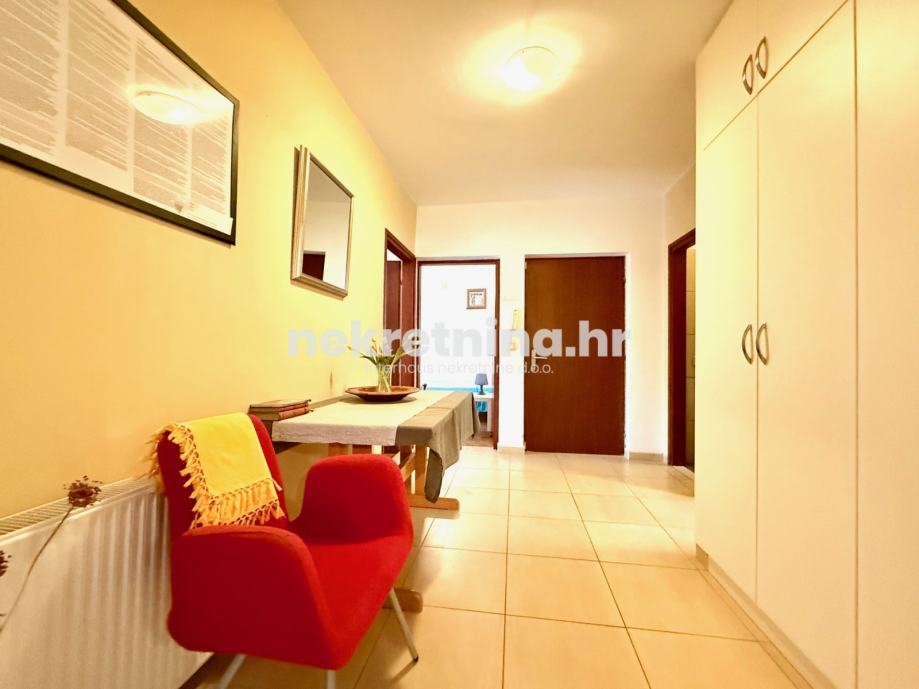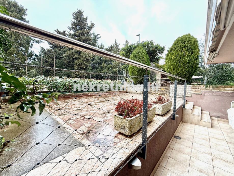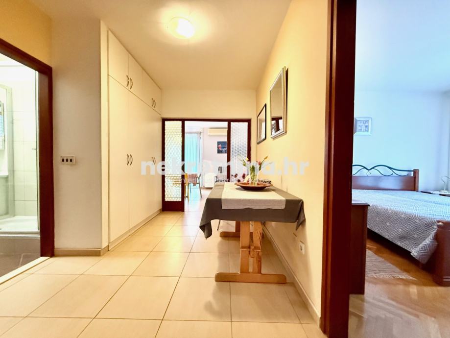 Apartman u suterenu koji je načelno u razini zemlje sastoji se od hodnika, kuhinje, kupaonice sa toaletom, spavaće sobe, dnevnog boravka s blagovaonicom, te terase. Također se nalazi garaža od 26m2 te kotlovnica na lož ulje.