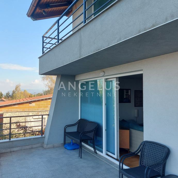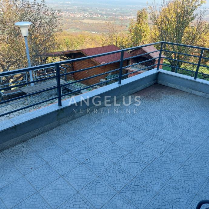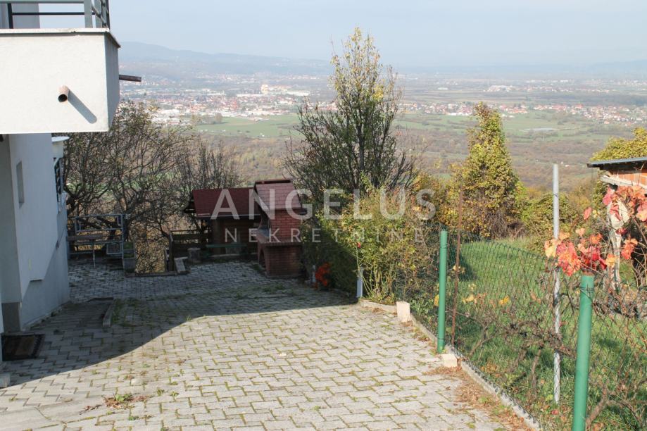 Iz dnevnog boravka i blagavaone se kroz trovratnu staklenu stijenu izlazi na prekrasnu terasu veličine 20 m2 iz koje seže predivan pogled na Samobor, Breganu, Dvorac Mokrice i Zaprešić.