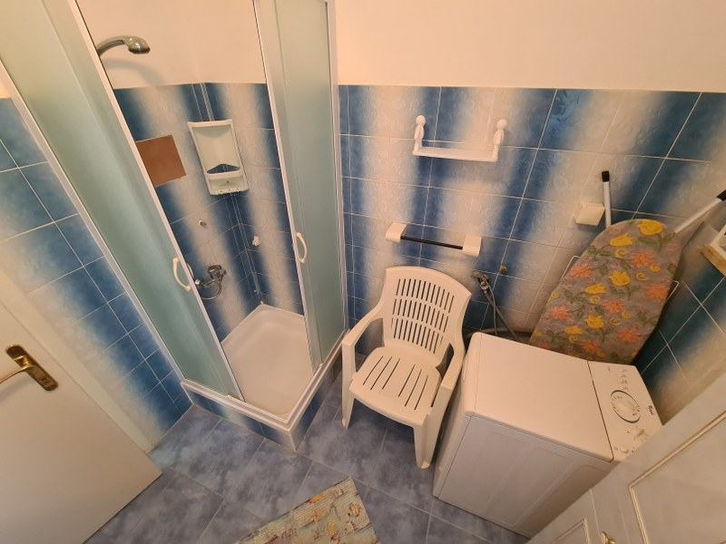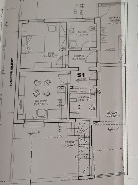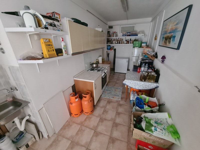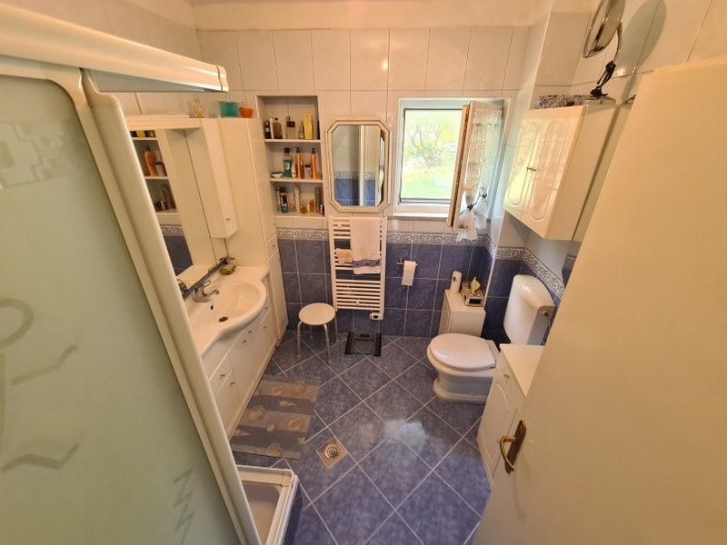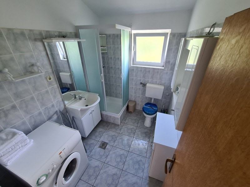 U prizemlju se nalazi jednosoban stan koji se sastoji od dnevnog boravka sa blagovaonicom, kuhinje, spavaće sobe, kupaonice, prostrane ostave te garaže i nenatkrivene terase.