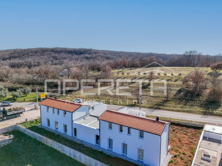 Prodaje se moderna dvojna kuća u idiličnom selu u blizini Momjana, udaljenom samo 12 km od mora i 5 km od grada Buje. Ova prekrasna kuća idealan je izbor za obiteljski život ili odmor u prirodi.