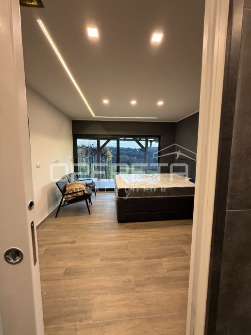 Ugrađena je nova plastično aluminijska stolarija sa velikim staklenim stijenama koje omogućuju izlazak na terasu iz dnevne sobe i spavaonice. Potpuno nova kupaonica, spavaća soba i kuhinja zajedno s blagovaonicom i dnevnim boravkom. U donjem dijelu kuće predviđena je soba za druženje, gostinjska spavaća soba, kao i soba za vešeraj i ostava. Ulaz u kuću moguć je s dvije strane i stepenice su opremljene novim keramičkim pločicama.