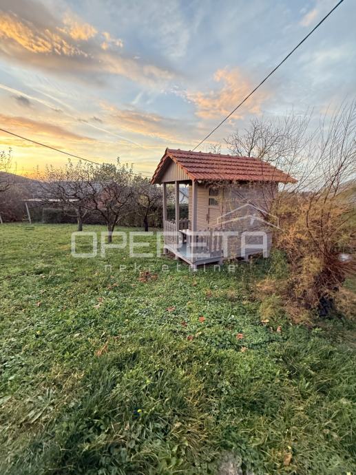 Uz kuću se nalazi sjenica za druženje, kao i nova drvena kućica za držanje alata za održavanje okoliša i dr.