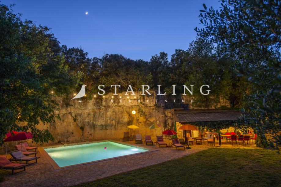 Bazen: Kameni bazen veličine 8x7m, s grijanjem i hlađenjem, smješten je ispod rimskih kamenolomskih stijena, što mu daje jedinstveni povijesni šarm. Pored bazena nalazi se kućica s opremom za zabavu i roštilj.