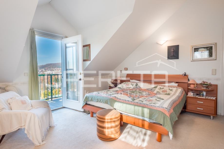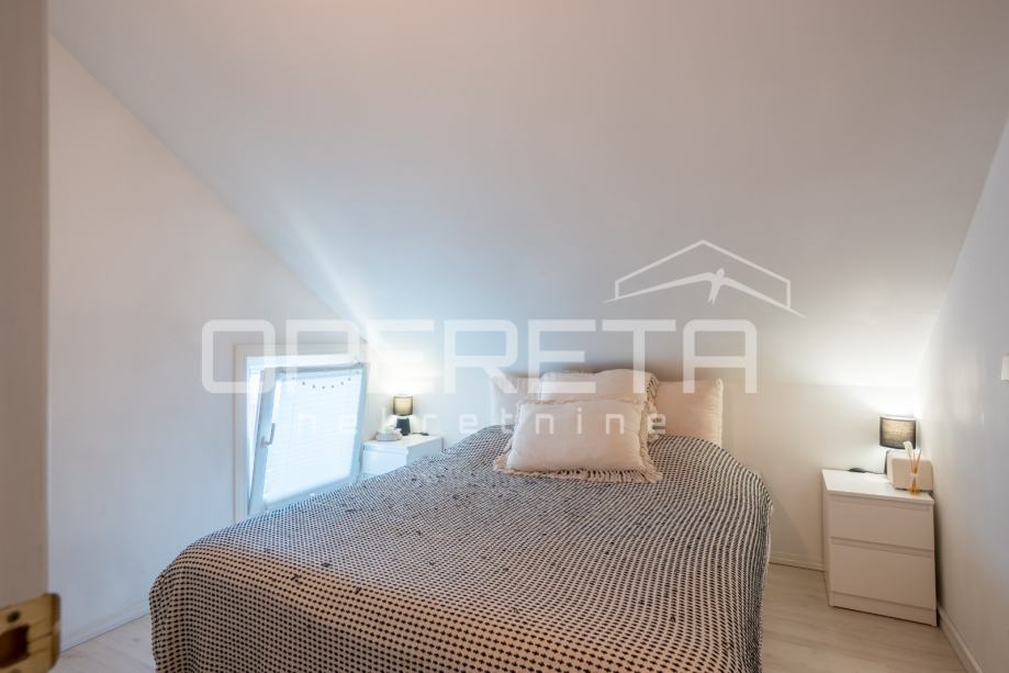 Potkrovlje: master spavaća soba s walk-in garderobom, kupaonica, veliki dnevni boravak s balkonom