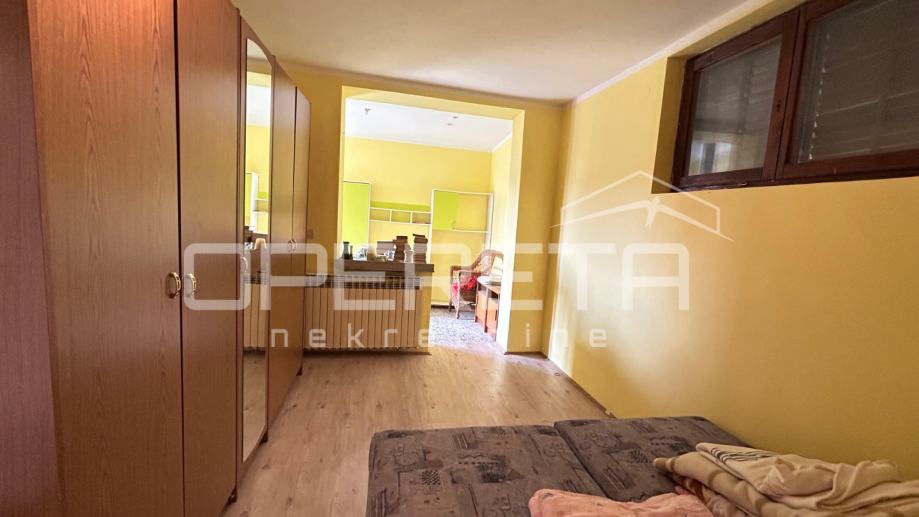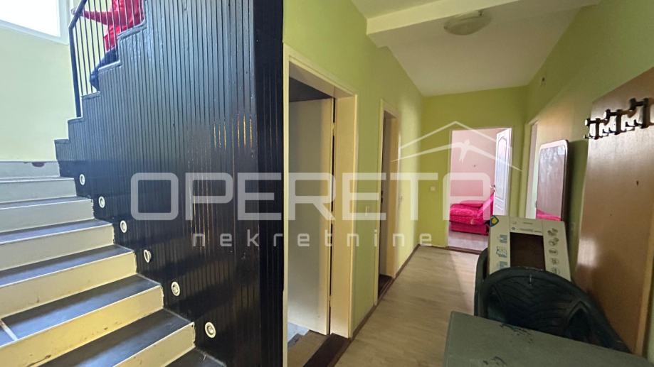 Na odličnoj i mirnoj lokaciji se prodaje kuća na parceli od 311m2. Kuća je tlocrtne veličine 100m2, a prostire se na 4 etaže. U podrumu se nalazi kotlovnica i spremište. Na 1. katu je ulazni hodnik, spavaća soba, dnevni boravak s blagovaonicom i kuhinjom te izlaz na dvorište i kupaonica s WC-om. Na 2. katu se nalazi dnevni boravak s blagovaonicom i kuhinjom te izlaz na balkon, 2 spavaće sobe i kupaonica s WC-om. Tavan je neuređen i uz male preinake se može dobiti spavaći dio. U sklopu kuće je i garaža cca 18m2. Osnovna škola je na minutu hoda dok se do centra grada dolazi za cca 5 minuta hoda. Vlasništvo uredno!