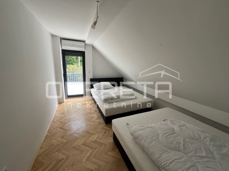 2 spavaće sobe, kupaonice s Wc-om i terase. Kuća je osim za život idealna i kao investicija jel pruža potpunu intimu okružena zelenilom i bez susjedstva.