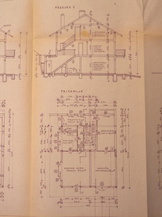 Prizemlje: blagovaonica,kuhinja,kupaonica,spremište,garaža