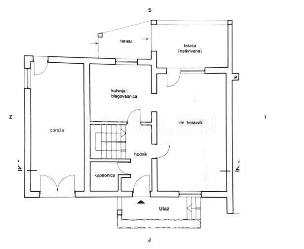 - PRIZEMLJE: dnevni boravak, kuhinja, spavaća soba, hodnik, natkrivena terasa te garaža