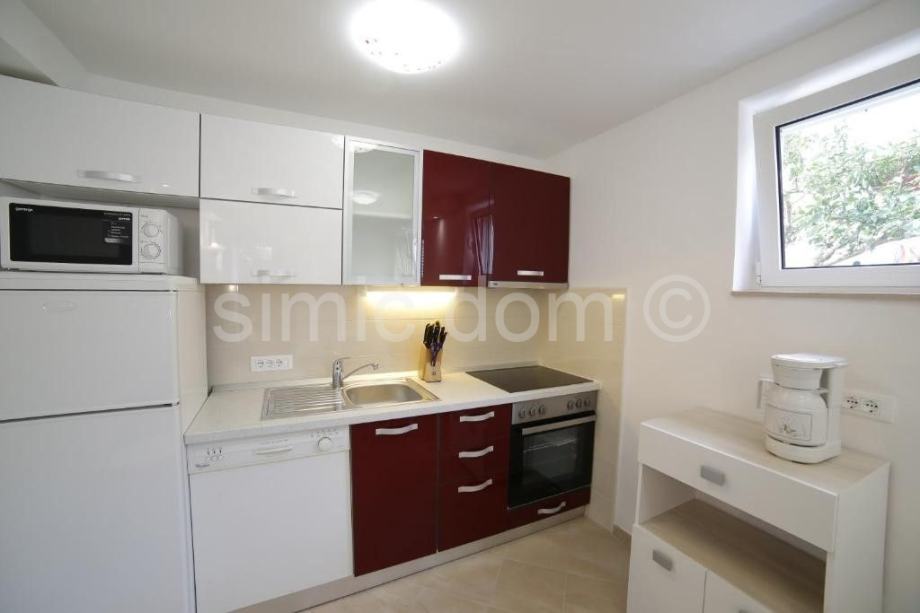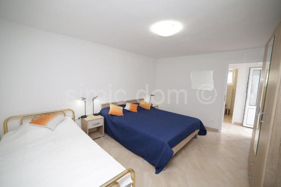 Kuća je položena na parceli površine 637 m2 koja uključuje 6 parkirnih mjesta te uređenu zelenu okućnicu s automatskim sustavom navodnjavanja. Tu je i prostrana terasa u prizemlju od gotovo 70 m2 s otvorenim roštiljem te još jedna manja terasa od 16 m2 ispred studio apartmana. Jednosobni apartman u suterenu ima također svoju terasu od ca. 18 m2. Prostrani trosobni stanovi u prizemlju i na katu imaju i svoje balkone okrenute prema moru, svaki cca. 12 m2. Kuća ima i značajan dodatni potencijal, prvenstveno zbog svoje lokacije u neposrednoj blizini gospodarsko-poslovne zone "Žedno Drage". Druga važna prednost je u vidu moguće dogradnje i nadogradnje nekretnine - postoji mogućnost proširenja na dio susjedne č.zem. prema istoku do same glavne ceste, a koja je u vlasništvu drugih osoba. S obzirom na poziciju zgrade na parceli, također je moguće i osigurati izgradnju bazena, čime bi se isto tako dobilo na dodatnoj vrijednosti i turističkom potencijalu.