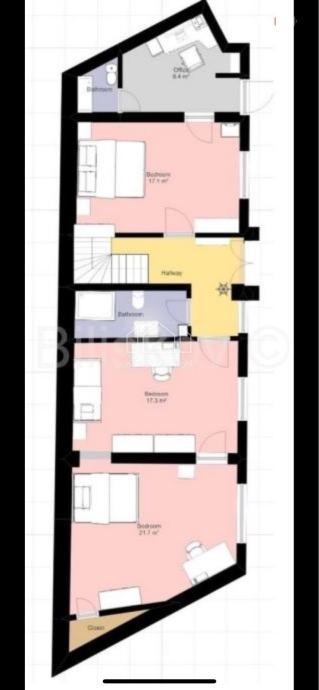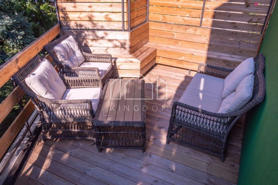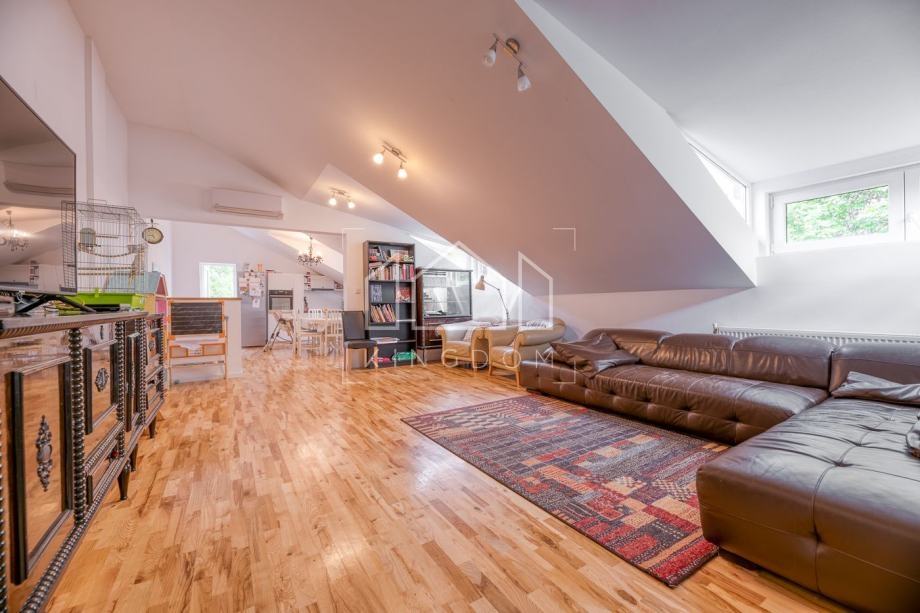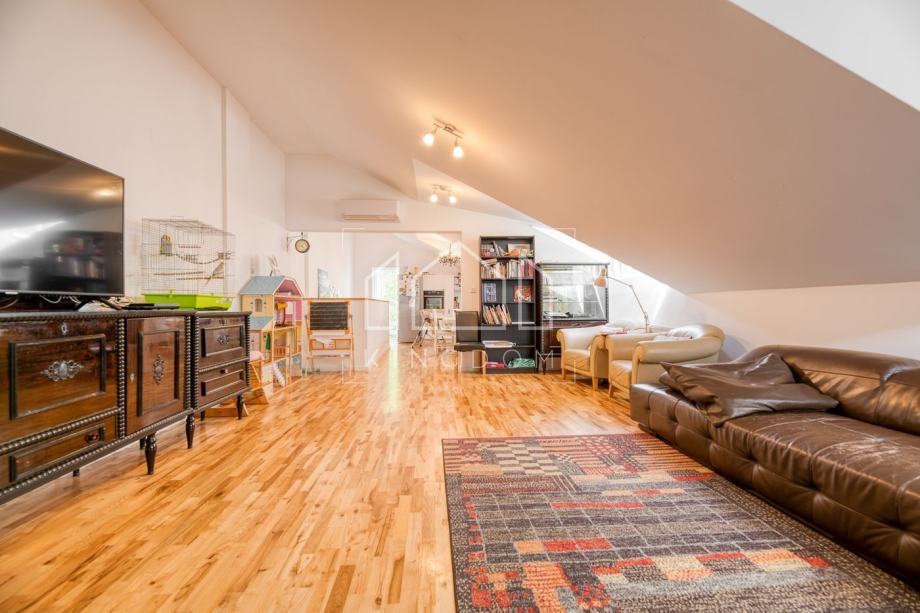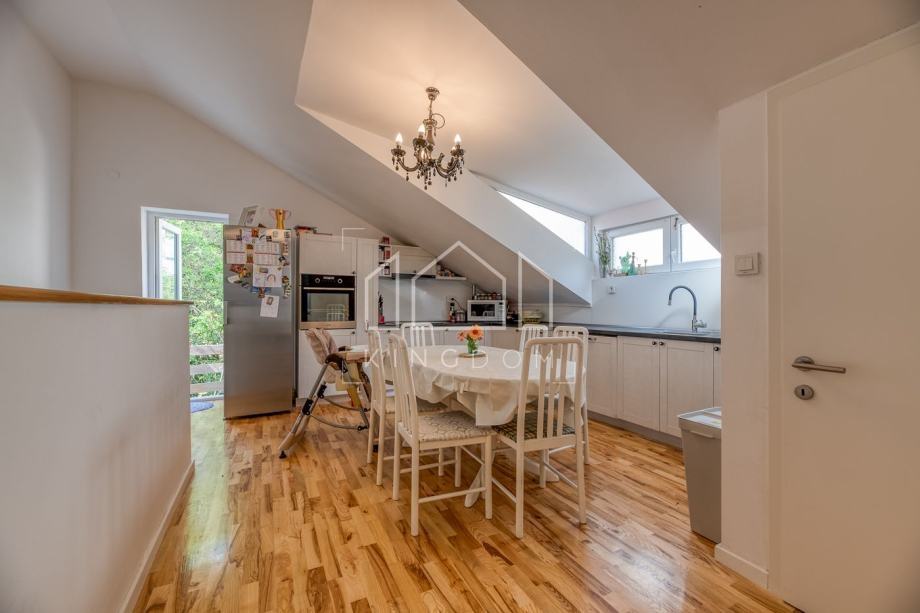 Kuća je samostalna dvokatnica od 204 m² i 6 soba. Prizemlje uključuje tri spavaće sobe, ured s unutarnjim i vanjskim ulazom te dvije kupaonice. Gornji kat ima prostrani open space od oko 60 m² koji uključuje kuhinju, blagovaonicu i veliki dnevni boravak, uz još jednu spavaću sobu i WC, te mirnu terasu koja pruža tišinu usred grada.