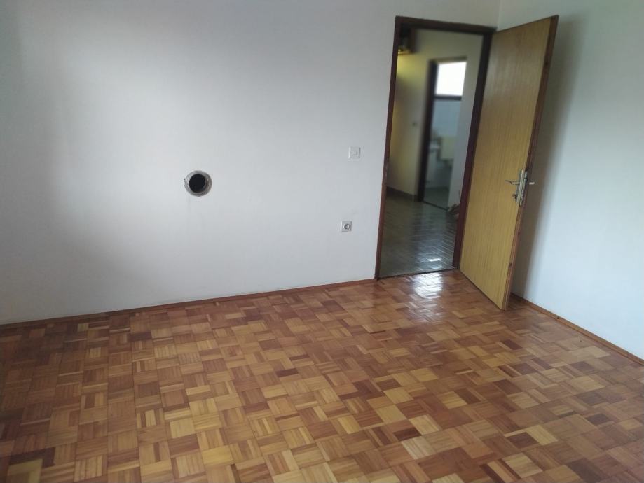U prizemlju je trosoban stan koji se sastoji od dvije spavaće sobe, prostranog dnevnog boravka sa blagovaonicom, kuhinjom, kupaonicom i hodnikom.