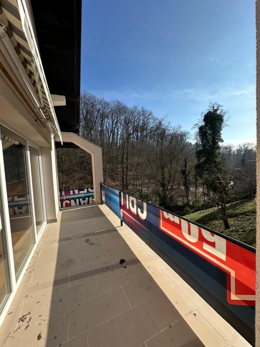 Okućnica ima 250m2 i ima dovoljno mjesta za uživanje sa prekrasnim pogledom na šumu Jelenovac.