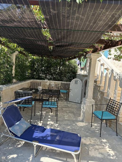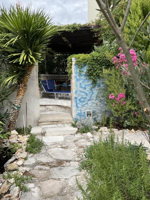 Ispod kuće nalazi se terasa s natkrivenom pergolom i zidanim roštiljem, savršena za opuštanje ili druženja u toplim ljetnim večerima. Vrt, zaseban od kuće, uređen je s mediteranskim biljem koje prostoru daje dodatni šarm i privatnost.