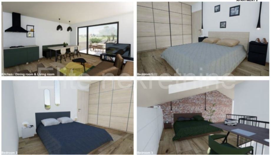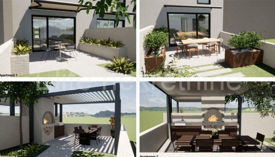Na prodaju su dvije moderne kuće u nizu, svaka sa zasebnom stambenom jedinicom površine 126,50 m², smještene na mirnoj lokaciji svega 6 km od Poreča i 4 km od prekrasnih plaža s Plavom zastavicom. Planirani završetak gradnje je jesen 2025. godine, što pruža mogućnost personalizacije unutarnjeg uređenja prema vlastitim željama.