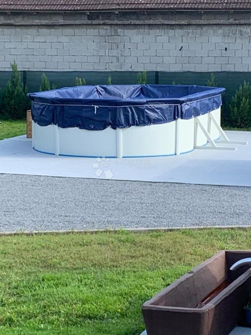 U dvorištu kuću se uz montažni bazen od 20m2 te pomoćni objekt s dvije velike garaže, natkrivenim zidanim roštiljem od pune cigle te ostava za spremanje svih popratnih stvari koje su potrebne za održavanje okoliša i bazena.