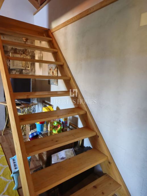 Na 1.katu i potkrovlju kuće nalazi se stan sa čak četiri spavaće sobe, kuhinjom, dva dnevna prostora, kupaonicom te toaletom. Pripada joj i mala radiona kao i prostrana terasa.