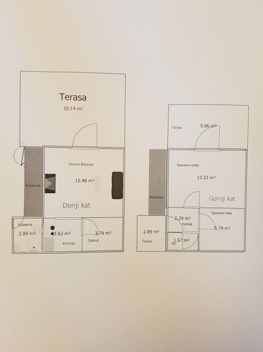iz kojih je izlaz na terasu. U prizemlju je i WC sa tuš kabinom.