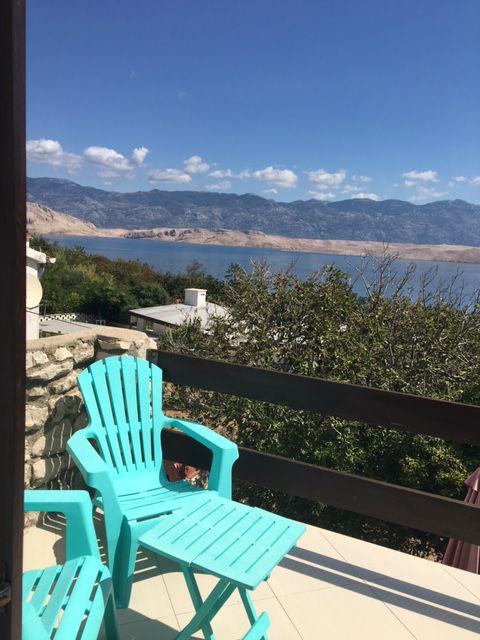 Udaljena od mora 200 m. Pogled na paški kanal.