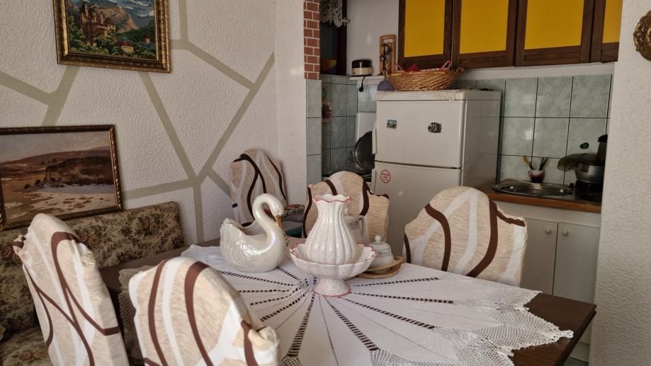 U prizemlju kuće smještena je dnevna soba s blagavaonom i kuhinjom , te manji wc.