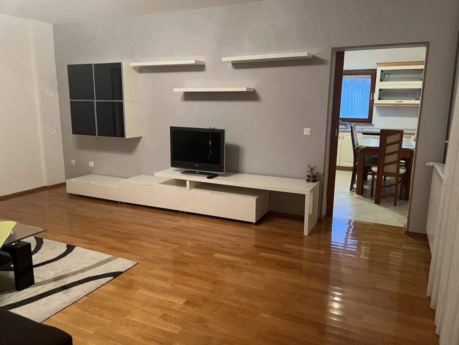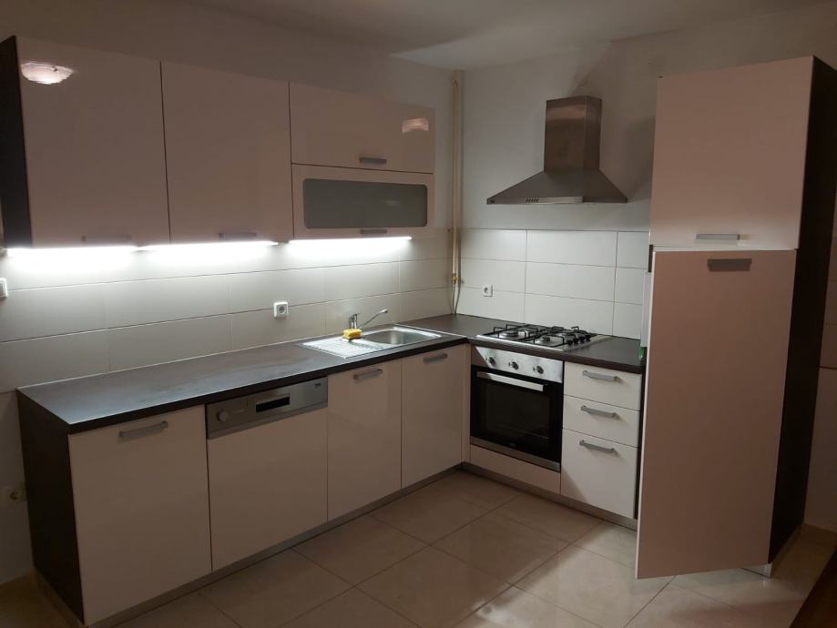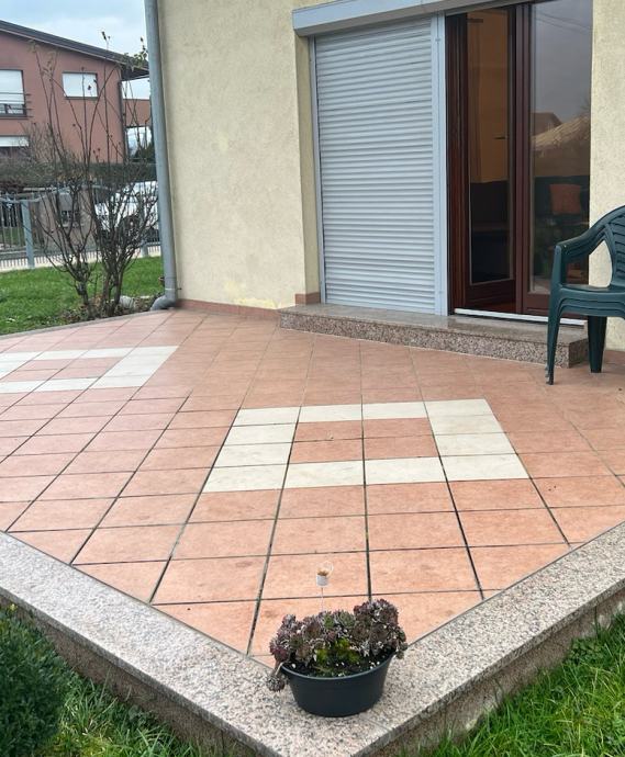 Stan u prizemlju je 90 m2 sastoji se od: ulaz, hodnik, kupaonica s WC,kuhinja s blagovanjem, dnevni boravak s izlazom na prostranu terasu,2 spavaće sobe i spremište.