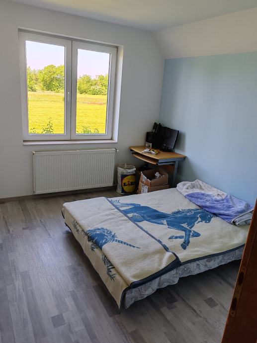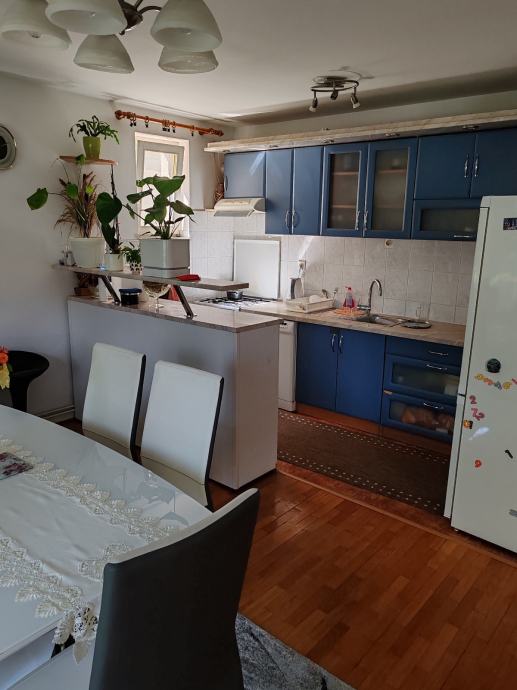 Prodajem kuću u dobrom stanju. Kuća se nalazi u mirnom kvartu i mirnoj slijepoj ulici. Okućnica se sastoji od travnjaka, popločenog dvorišta sa parkingom i garažom.Kuća i okućnica se sastoje od 440 m2.Garaža ima 35 m2.Svi papiri su 1/1.