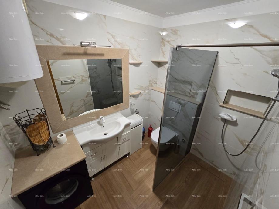 Stanu pripada parkirno mjesto (13, 8 m2) i ostava (7 m2) u podrumu zgrade. Stan je udaljen nekoliko minuta hoda od mora i gradske šetnice.