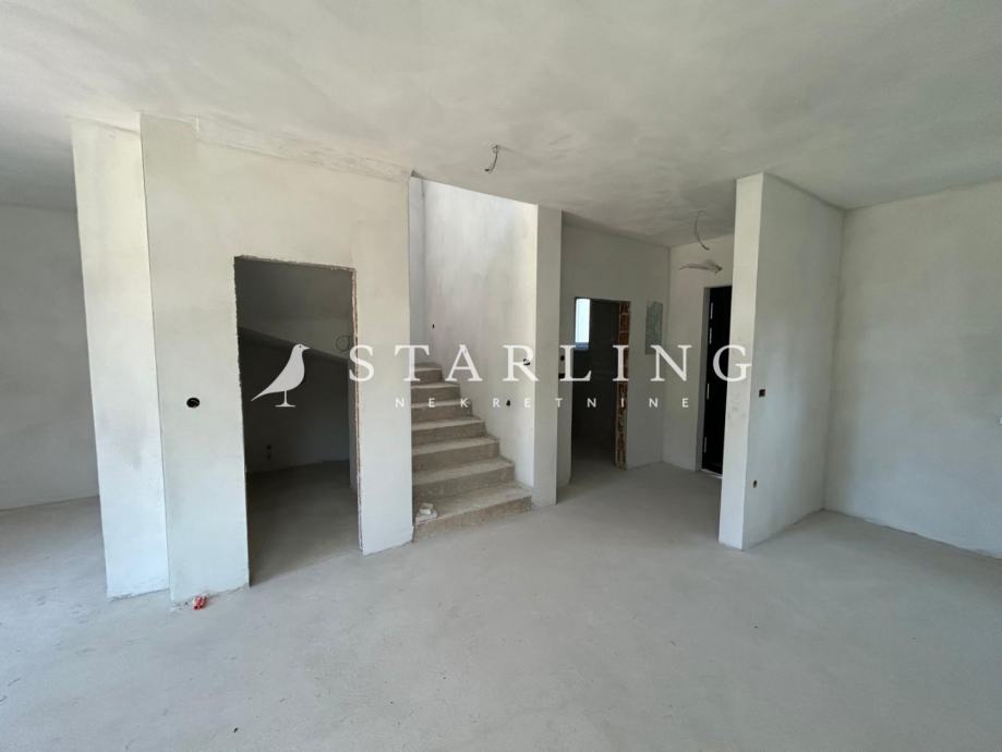 Kuća površine 112 m2 proteže se na prizemlje i kat te ima dva parkirna mjesta i dvorište.
