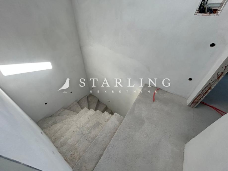 Ostaje za dovršiti podne obloge i kupaonice (keramika, parketi ili laminat), postaviti utičnice i rasvjetna tijela, unutarnju stolariju, obojiti zidove, postaviti ogradu na unutarnjem stepeništu i terasama (staklo ili željezo) te opremiti kuću namještajem i sanitarijama.