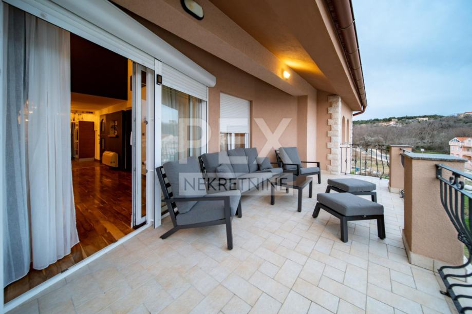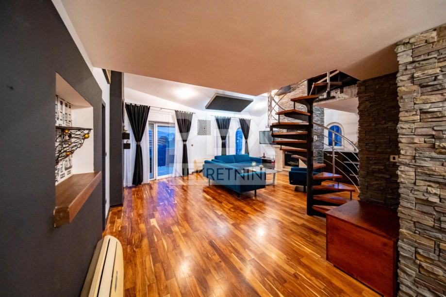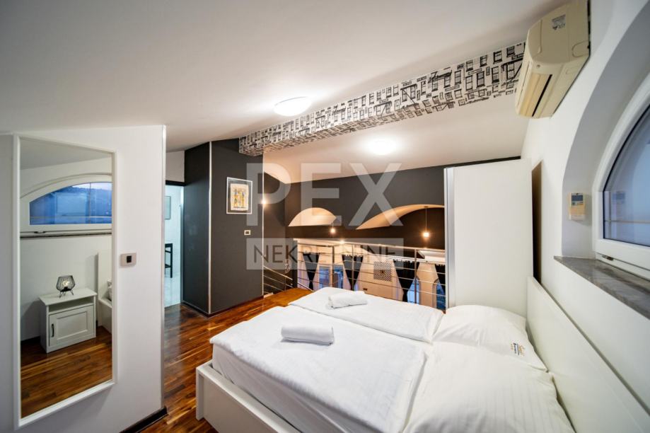 Na 2. katu nalazi se dvoetažni penthouse s galerijom ukupne površine 250m2. Prva etaža sastoji se od prostranog dnevnog boravka, blagovaone i kuhinje, 2 spavaće sobe, kupaonice, hodnika i prostrane terase. Na drugoj etaži nalaze se 2 spavaće sobe, kupaonica s WC-om i WC. Ima izlaz na balkon s pogledom na more.