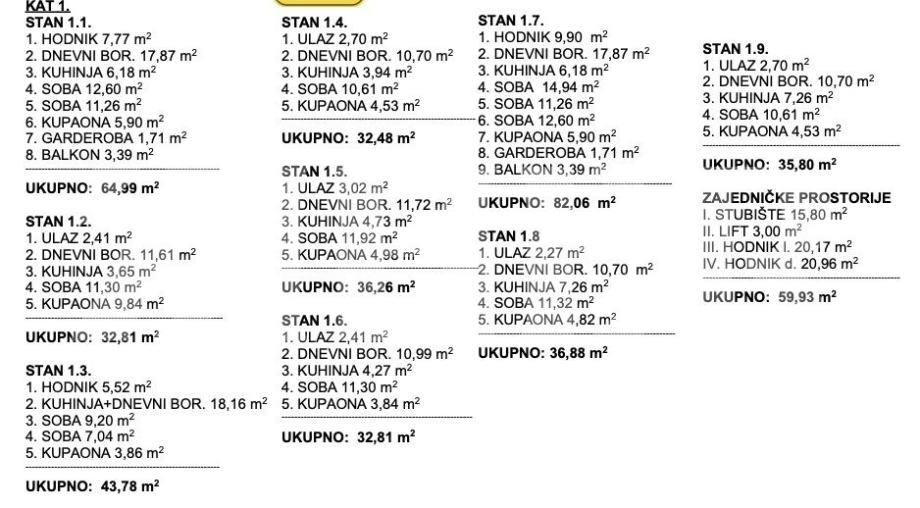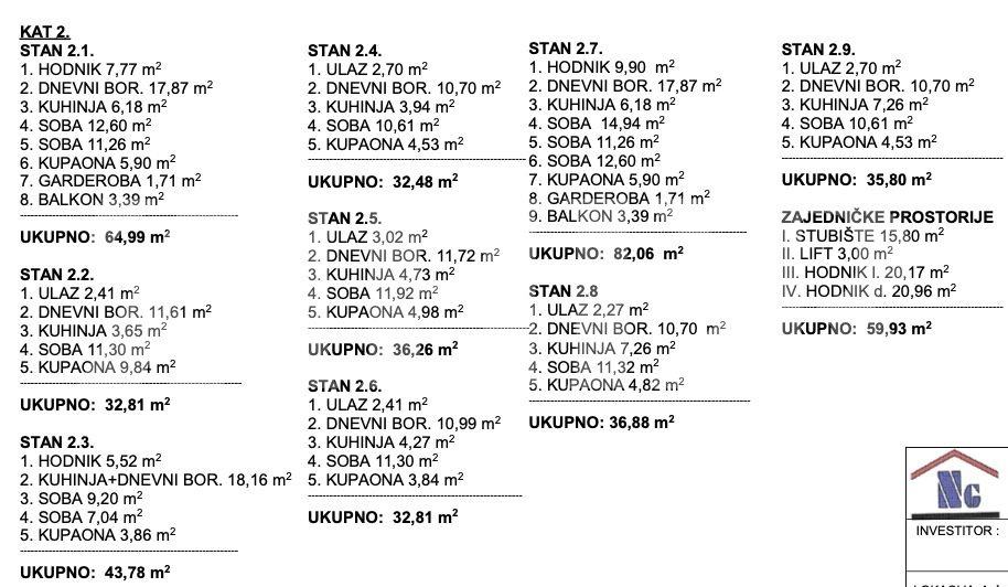 Prodaju se stanovi u zgradi od 32 stana u izgradnji, koja se sastoji od podzemne garaže s parkirnim mjestima, prizemlja, prvog, drugog i trećeg kata.